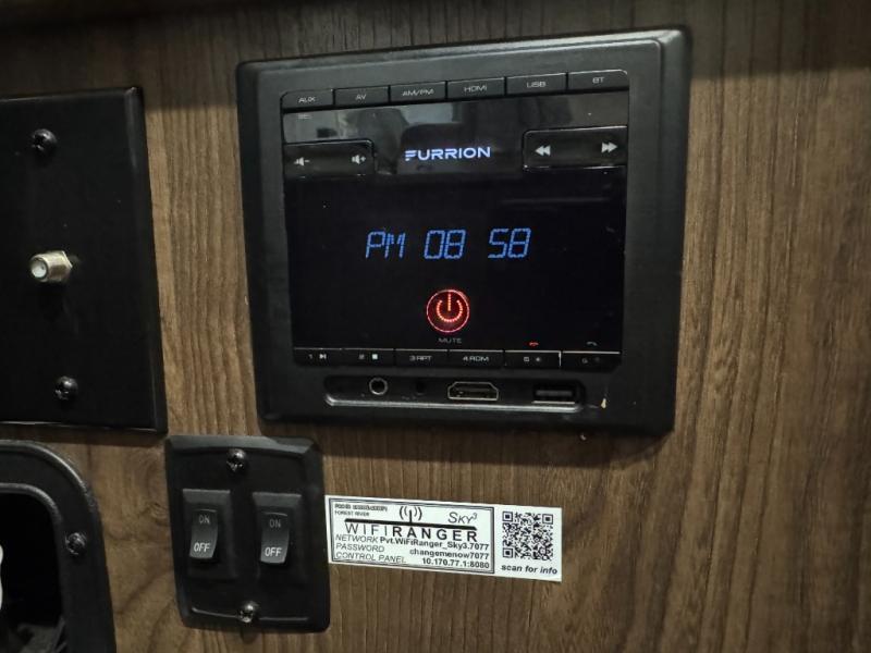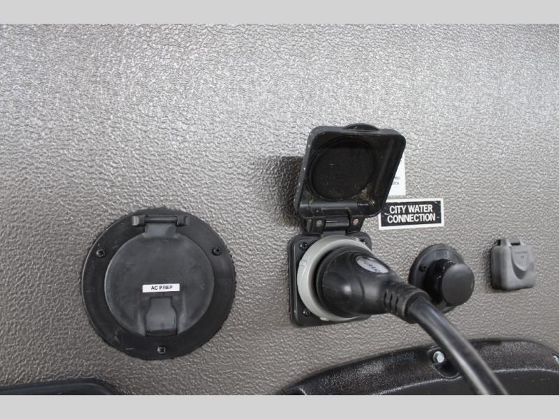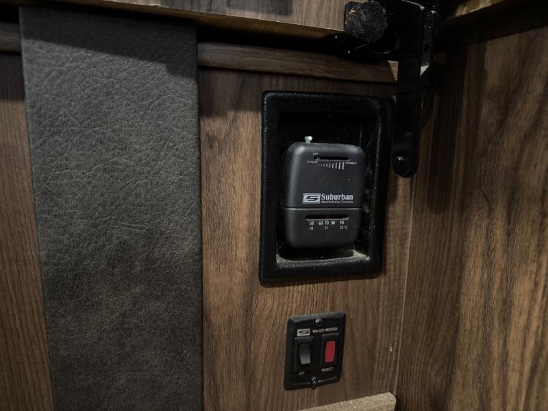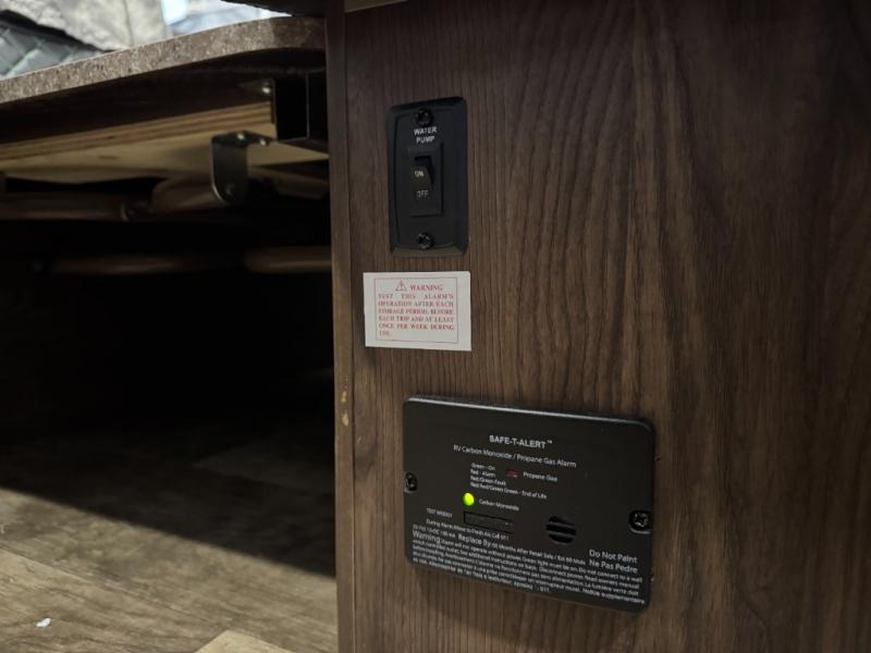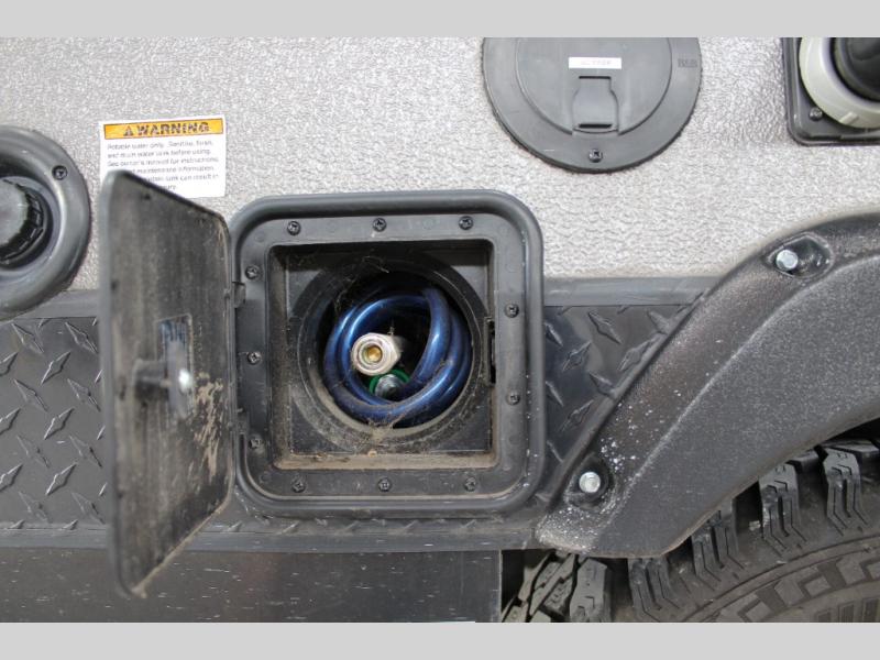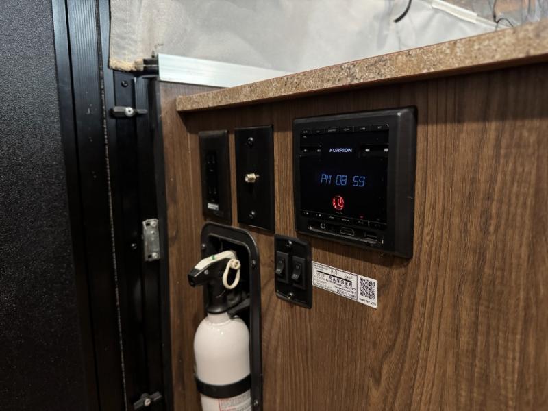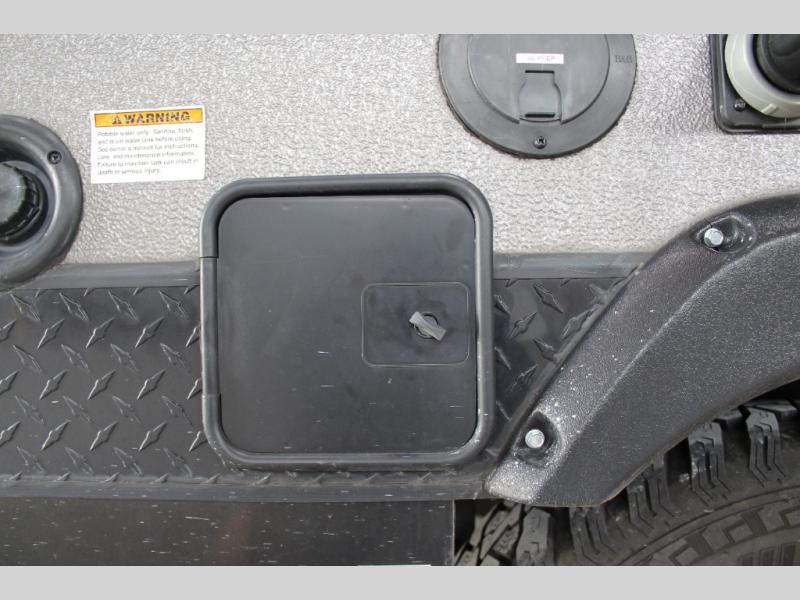 As you enter this model, to the left there is a cabinet for storage. To the right of the entry door you will find additional storage with the second cabinet. Towards the rear there is the convenience of a port-a-pottie.