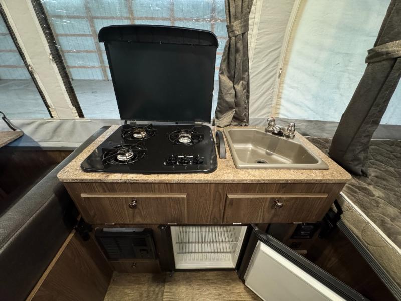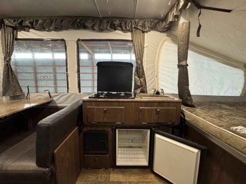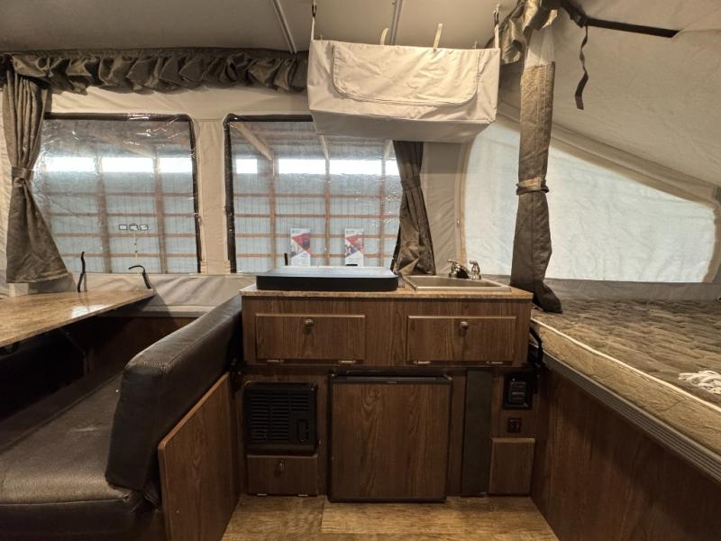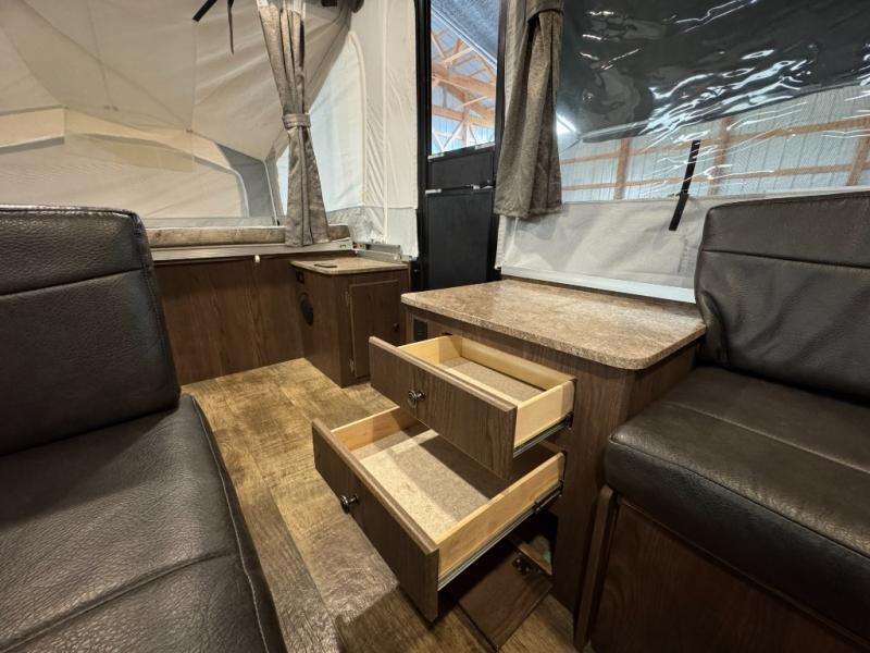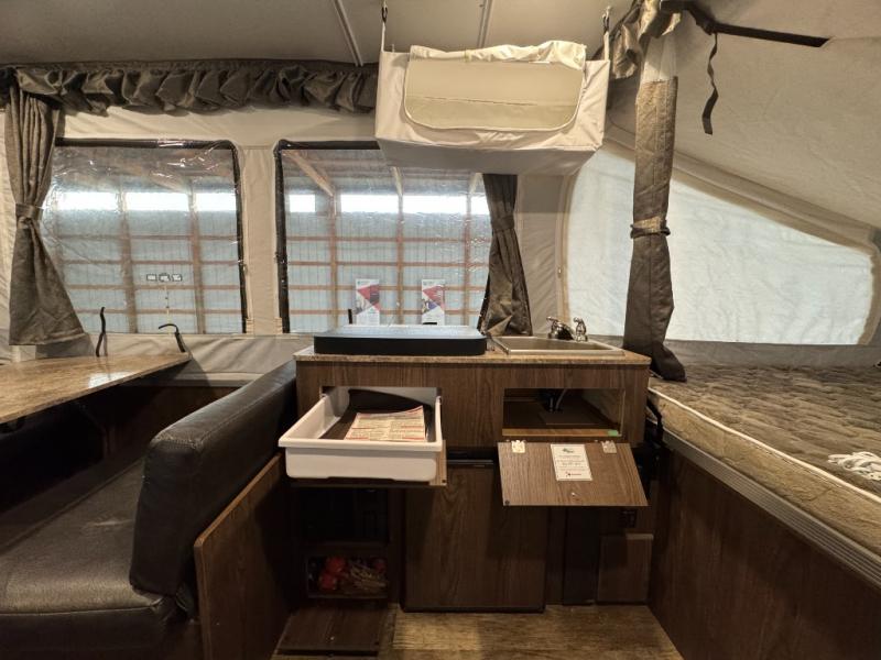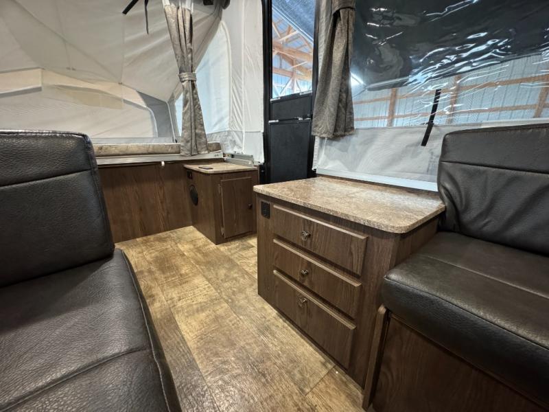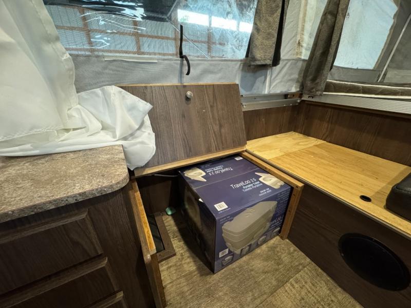 When you are ready to spend some quality time outdoors, then choose this 1910ESP Rockwood Extreme Sports folding pop-up camper by Forest River! This model features a port-a-pottie, rear bed that is 48" x 80" and a front queen bed.