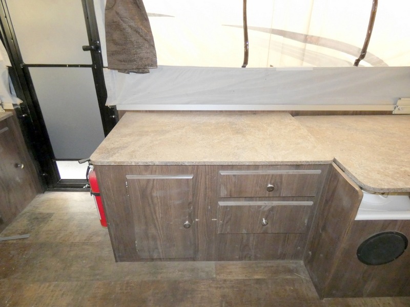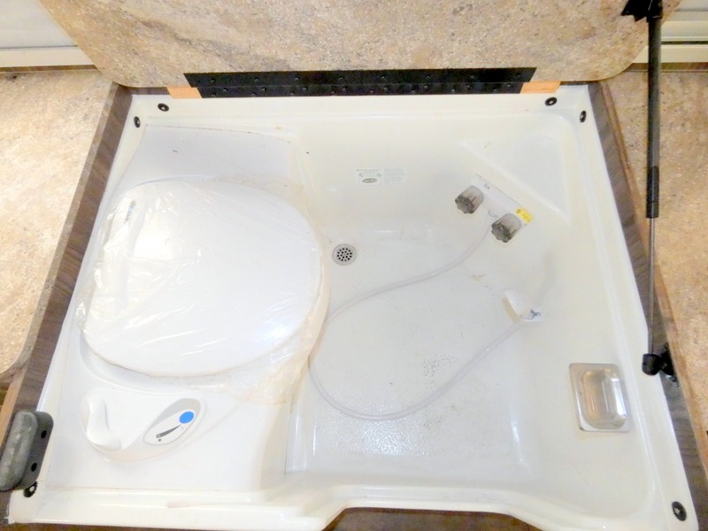 There are four storage cabinets throughout this model. Along the door side you will find a shower and a cassette toilet. Now that is convenient while camping in the great outdoors.