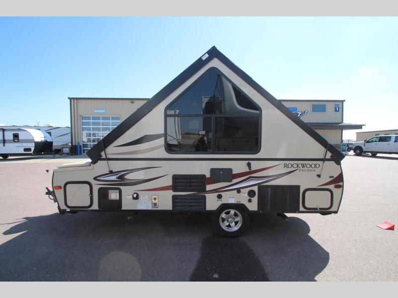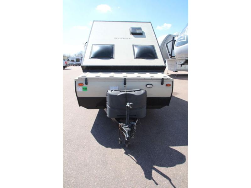 The Rockwood Extreme Sports Package Hard Side A-frame by Forest River is built for 21st century camping with the digital media receiver with Bluetooth, WiFi Ranger WiFi Booster, and the recharging station to name a few of the "must have" features to keep you connected on any adventure. The permanent mount cross bars by ProRac Systems Inc. allow you to take along up to 150 lbs. of equipment on top when the A-frame is folded down and ready to go. You will appreciate the smooth ride on the Dexter Torflex rubber torsion suspension axles, and the 12" ground clearance provided by the 15" Mud River radial tires with aluminum wheels. It's time to stop thinking about living a fun life, and start living an extreme life!