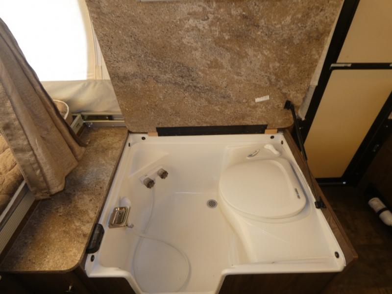 If you enjoy camping in the great outdoors with friends or family then this Forest River Rockwood Freedom 2318G pop-up camper is just for you! It features a swing galley that allows you to set your sink on either the floor while traveling while the camper is down or on top of the sink base while in use. The gaucho sofa provides a seating area during the day and a sleeping area at night. You can store all of your camping needs with plenty of room inside the exterior storage.