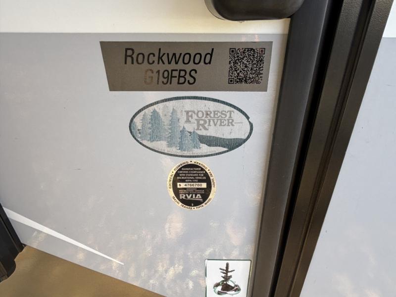 Come see just how fun and easy camping can be with this Rockwood Geo Pro 19FBS. You will find that the single slide out provides more floor space between the front and rear of the trailer to move about without having to squeeze in. The rear full bath across from the entry allows for quick access inside and outside so you don't have to miss any of the fun. The sofa slide includes cup holders and a table for dining, working, or extra sleeping space. The queen bed up front will allow you to unwind before the next adventure. You can cook inside on the recessed cooktop with flush mount cover and in the microwave, or outside on the gas grill, plus much more!
