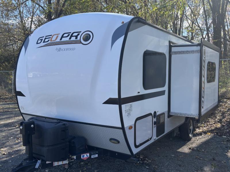 The Forest River Rockwood Geo Pro travel trailer is built to be towed by most "crossover" vehicles and smaller SUVs. Each model includes a WIFI Ranger WIFI Booster to boost your WIFI and give you a secure connection wherever you land. You will also enjoy kitchen amenities, bathroom facilities, a water heater with interior gas and electric switches, a Water-Pur filtration system, and a manual awning to name a few features. Come choose your favorite Rockwood Geo Pro, and start exploring the world!