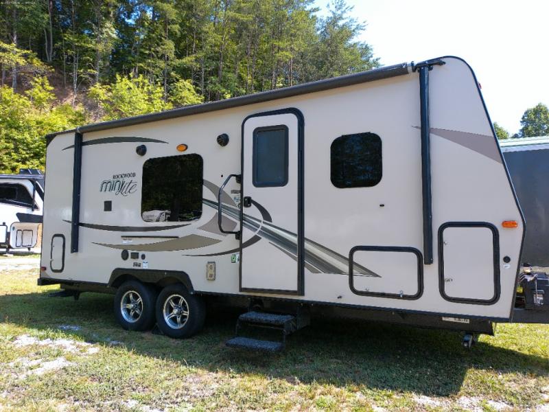 Rockwood takes pride in packing as much value in as little space as they can in this Mini Lite Series to make your investment into these models go a long way. They have quality vacuum bonded construction with their all steel I-beam's and six sided aluminum frames. They do not take shortcuts in any of their units. They are all built from the ground up. The underbelly increases aerodynamics, the Dexter Torflex axles are self-dampening and have independent wheel suspension, and the interior is all residential with solid kitchen countertops and Driftwood and Maple cabinets. Take a look at these Rockwood Mini Lite's today!