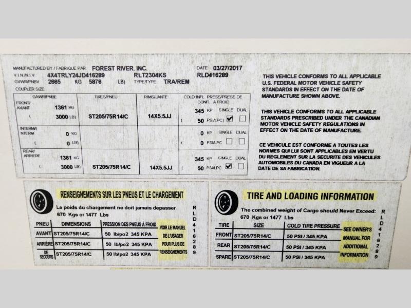 This single slide out Rockwood Mini Lite 2304KS by Forest River is a great travel trailer for a weekend away. In the kitchen area, there is a refrigerator and pantry for your food storage needs while camping. You can hang your clothes in the wardrobe and lay your keys on a nightstand on either side of the sofa/Murphy bed. Outside be sure to enjoy the shade from the 15' awning, cooking your favorite camp meals on the gas grill, and the storage provided by the exterior compartments.