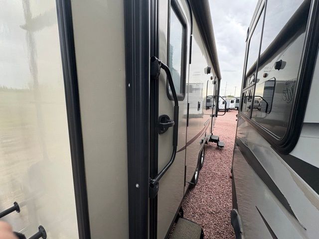 Wow! You need to take a look at this Rockwood Mini Lite 2503S by Forest River to find a travel trailer with the convenience of dual entry, a sofa and Murphy bed combination, and a slide out for more interior floor space. There are plenty of overhead cabinets throughout the trailer for your dishes, games, and such, as well as exterior storage for your outdoor gear. You can even choose an optional rear ladder and a curbside gas grill. The grill makes cooking outside fun for the family.