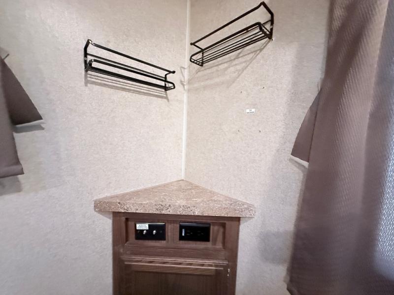Start your next camping trip with this 2506S Rockwood Mini Lite travel trailer by Forest River. There is a lot of storage throughout this unit for your vacation. You have plenty of overhead storage, a pantry in the kitchen, wardrobes in the bedroom, and a linen closet in the bathroom. You can bring whatever you like with you, and you will have space to put it. There is also some exterior storage as well.