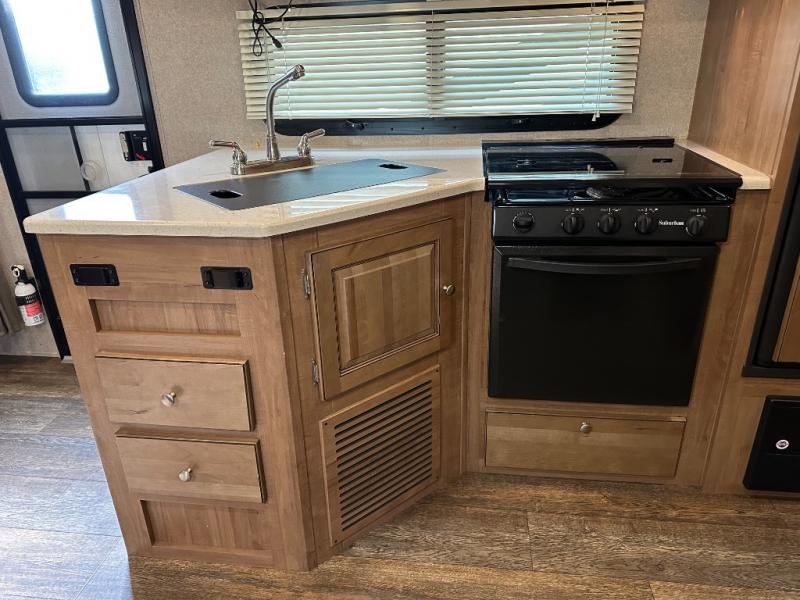 Rockwood takes pride in packing as much value in as little space as they can in this Mini Lite Series to make your investment into these models go a long way. They have quality vacuum bonded construction with their all steel I-beam's and six sided aluminum frames. They do not take shortcuts in any of their units. They are all built from the ground up. The underbelly increases aerodynamics, the Dexter Torflex axles are self-dampening and have independent wheel suspension, and the interior is all residential with solid kitchen countertops and Driftwood and Maple cabinets. Take a look at these Rockwood Mini Lite's today!