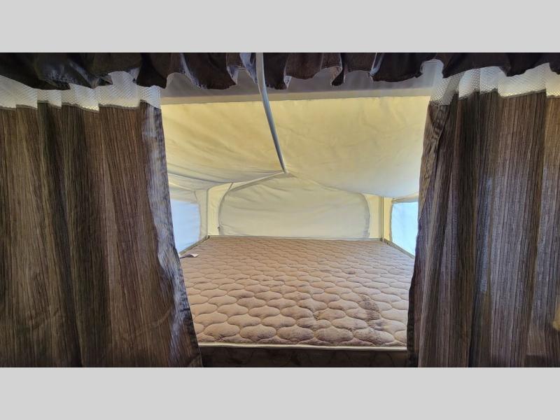 As you enter you will see the openness from the rear queen and front king tent end bed allowing for more space to move inside.