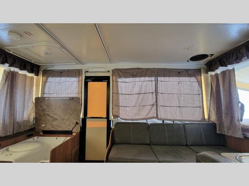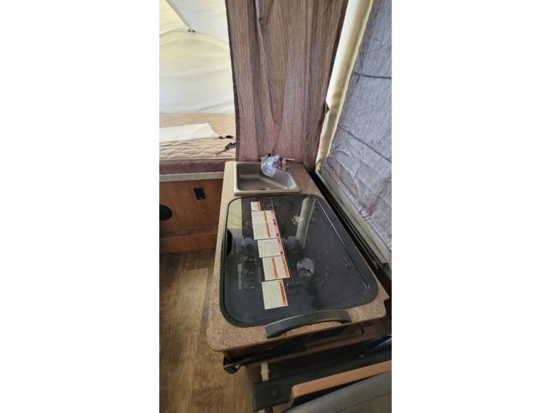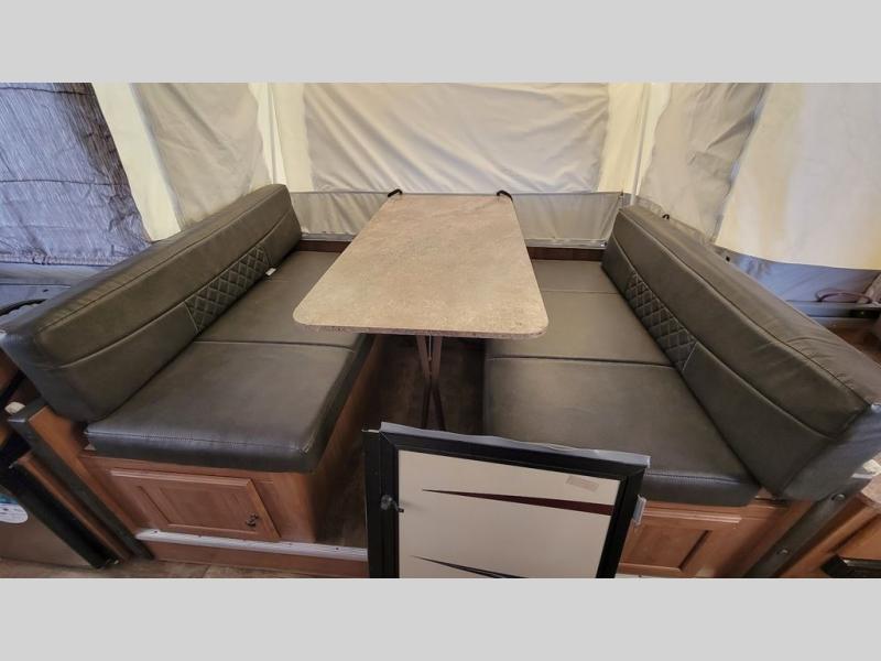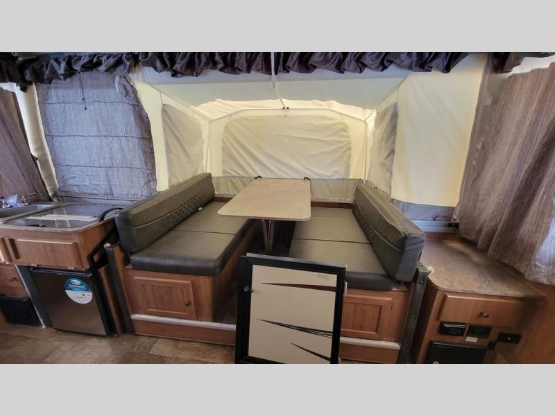If you have been looking for a folding pop-up camper with a shower cassette and toilet, a sofa, and a slide out dinette then step inside this Rockwood Premier 2516G to find these features, plus much more!