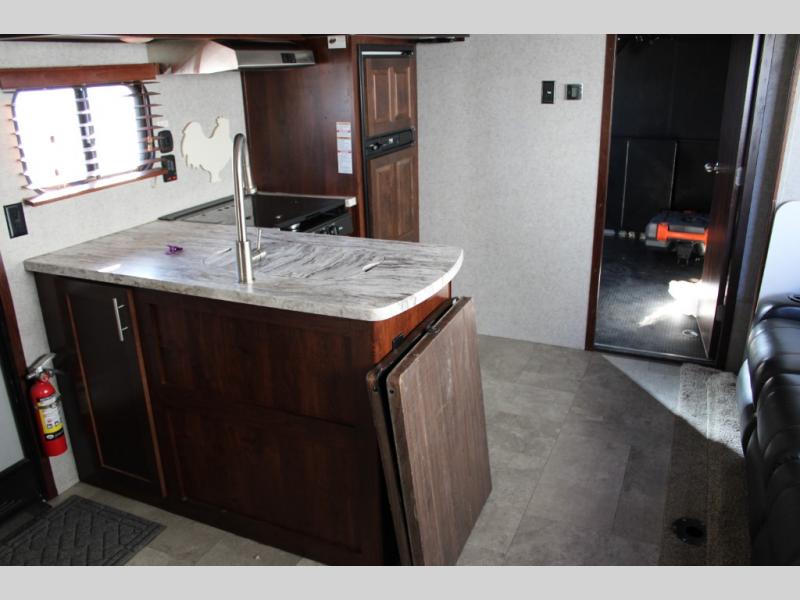 Are you ready to do a little outdoor riding and playing and when you are done come back to the comfort of your trailer? Then you will want this 31V Vengeance Rogue toy hauler travel trailer! With two entry doors you can easily enter into the garage or the main living area. The 10' garage has plenty of room for a few four wheelers, dirt bikes, or an ATV. After play outdoors then come relax inside at the sofa with recliners, and at night you can retreat to the private front bedroom where there is a king bed!