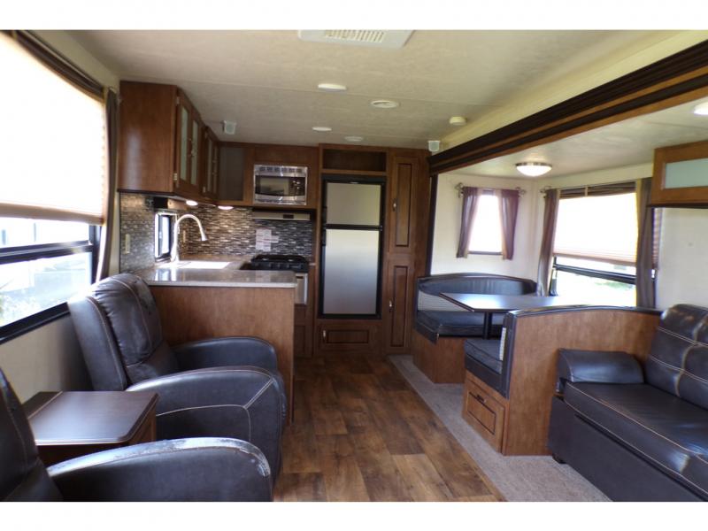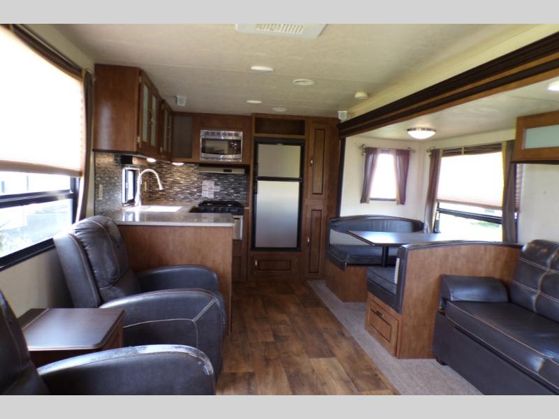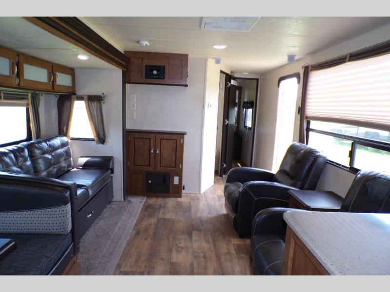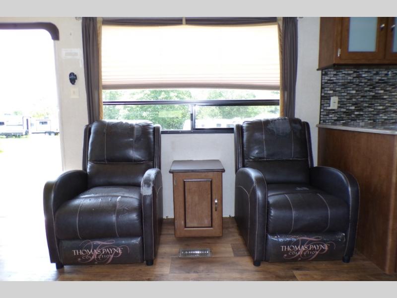 What I liked most: Easy to walk around the bed in the master bedroom. Open and light decor styling in the living areas. Plenty of seating with the dual recliners and opposite facing love seat. Ability to access the storage in the front of the loveseat. Plenty of good storage in the rear kitchen. Pantry appears small until you open it and realize it's wider than the cabinet door is iteself.