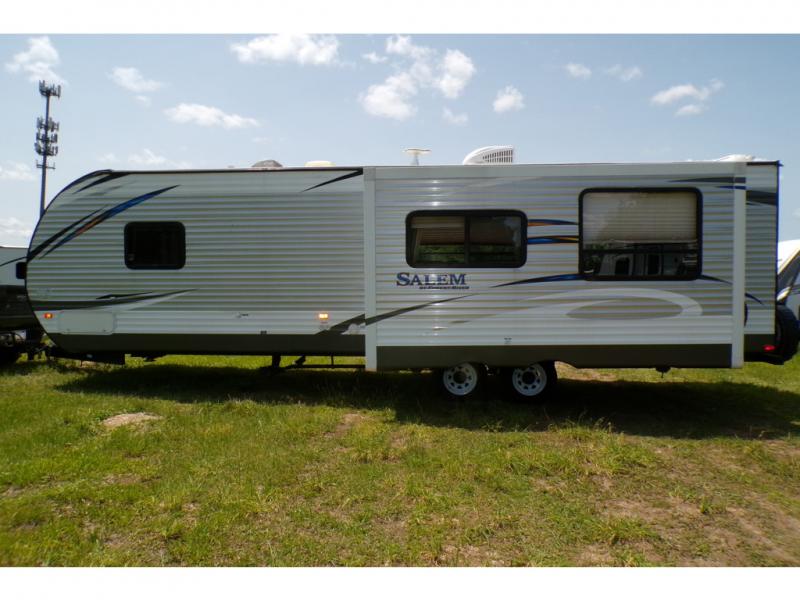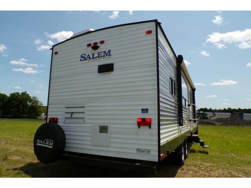 Plan to make plenty of memories with your family when you choose to camp in a Forest River Salem travel trailer! Along the exterior you will find features such as a full walk on one-piece Superflex roof with a 12 year warranty and a vinyl patio awning that is cold crack and mildew resistant. The kitchens are sure to draw your attention with the Dometic double door refrigerator, large dinette picture window, the Mortise and tenon shaker style cabinet doors, plus abundant cabinet storage. In the bedrooms you will find bedside mirrored wardrobes with a shelf above, and a strut lifted storage area under the bed. Why wait? Come select your Salem travel trailer today, and begin camping tomorrow!