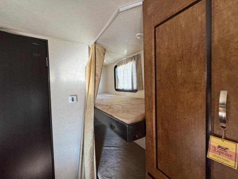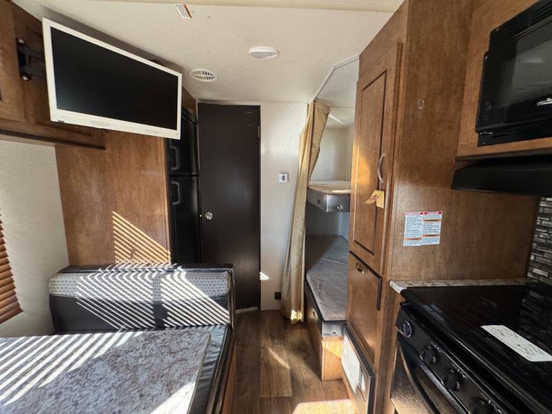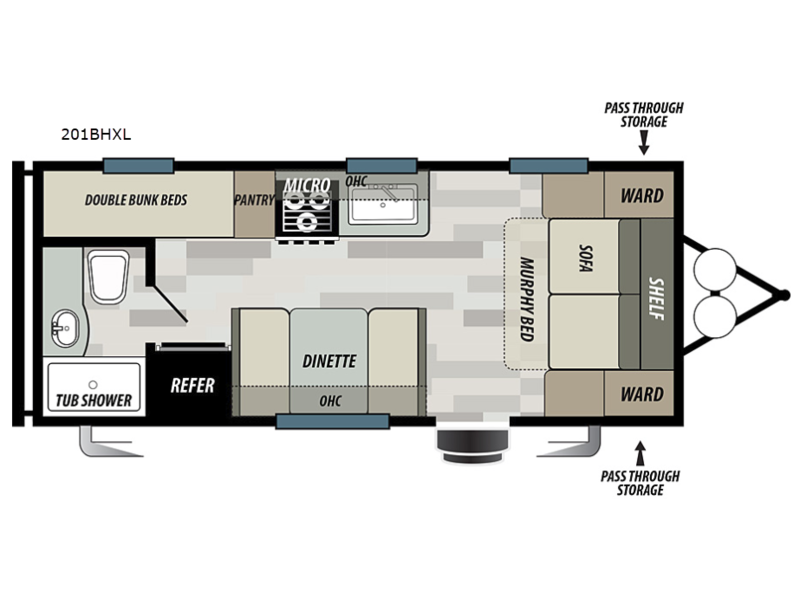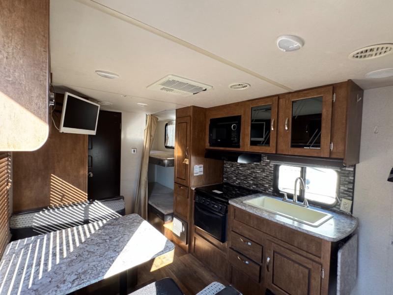 The perfect unit for a young family just starting out or for seasoned campers alike. Model 201BHXL offers a set of bunks for the kiddos, and a space saving Murphy bed for mom and dad! You can easily cook up light meals and snacks for your family in the kitchen and enjoy them at the booth dinette. You will also find ample storage for dishes and things. The very rear of this unit features a set of bunk beds for the kids to enjoy, plus they are conveniently located next to the complete bath at night.