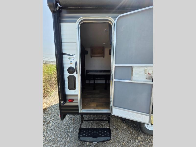 When you need a camper with a little extra room for your gear, this Salem FSX model might easily fill the need. The rear 82" x 78" ramp door will make loading and unloading any of your big toys easy. Even if you don't own big toys, this is still a great option for those that want to transport bicycles or kayaks and fishing gear to your favorite weekend gathering spot. The flip out sofa is great for relaxing when inside, and you will appreciate the kitchen area and bathroom to keep fueled and refreshed. Enjoy this unit in any type of weather with the added side mount AC to keep you cool during even the hottest summer months. The 12' awning is a plus for providing a shaded exterior living space to enjoy during the daytime too.