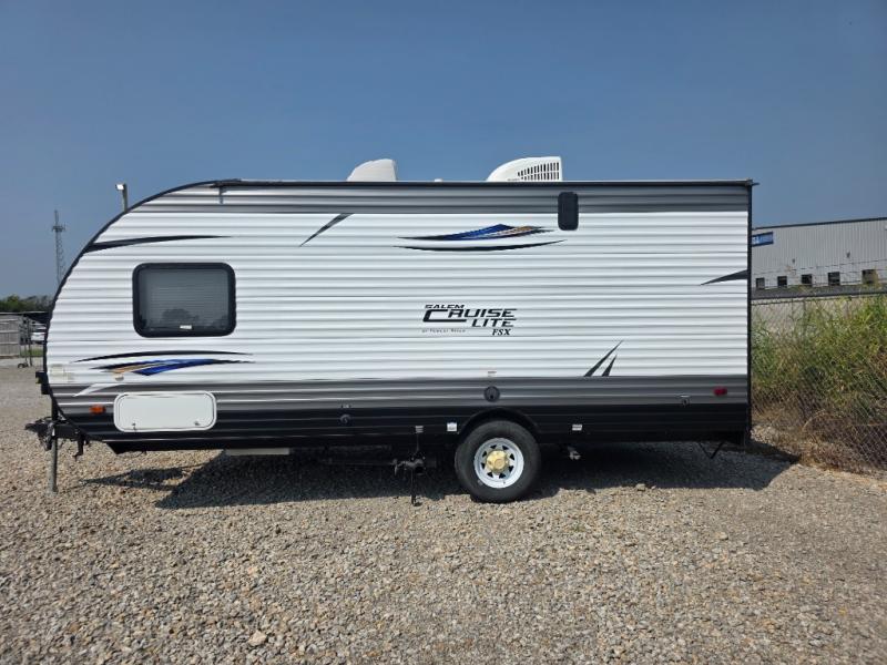 In any Salem FSX travel trailer by Forest River you can count on having fun while you enjoy any outdoor adventure away from home. These full-featured lightweight units are easy to tow, and offer a modern residential living space including a queen sized bed in each unit, bunks in select models, and there is also a couple of toy hauler units for those who can't leave home without a few big toys tagging along! These trailers are all a full 7' 6" wide with full interior stand up height. Depending on the model you select, you will find either a side or roof mount AC for added comfort in warmer climate as well. So, for a value packed unit that is lightweight and feature rich for its size, choose a Salem FSX travel trailer and head out for a weekend of outdoor fun!