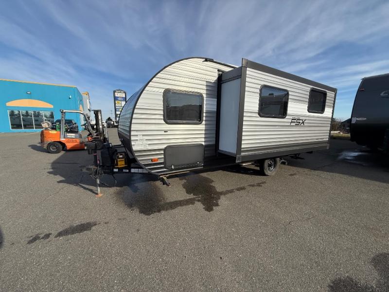 Whether you are new to camping or a seasoned RVer that is looking for a lightweight easy to tow travel trailer, you are sure to love this cute Salem FSX model 190SS. Right from the start, you will quickly see that even a tiny package can provide great fun and adventure. Coming in at just 7' 6" wide, the large roadside slide out will open things up inside to provide plenty of room for everyone. You will also appreciate the dual entry doors with the door closest to the rear of the trailer leading into a private toilet and shower area. Now that's convenient for camping! You will find cooking, seating, and sleeping accommodation inside for up to four campers, and there is also plenty of storage for your things!