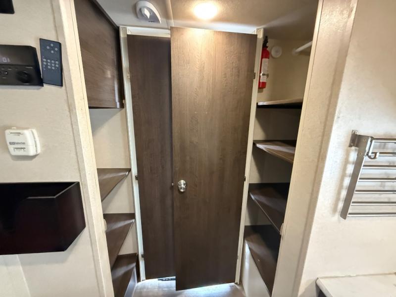 You are sure to love this Salem FSX camping trailer for all of your weekend get-a-ways! Model 200RK offers a unique rear kitchen layout, and a single slide out along the roadside for added interior space. The walk-in pantry and wardrobe are both nice for storage as well as overhead cabinets and a front bedroom area shelf. A side mount AC makes camping comfortable even in the hottest weather, and a 12' awning over the side entry door provides added living space in the great outdoors!