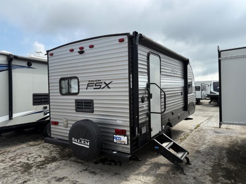In any Salem FSX travel trailer by Forest River you can count on having fun while you enjoy any outdoor adventure away from home. These full-featured lightweight units are easy to tow, and offer a modern residential living space including a queen sized bed in each unit, bunks in select models, and there is also a couple of toy hauler units for those who can't leave home without a few big toys tagging along! These trailers are all a full 7' 6" wide with full interior stand up height. Depending on the model you select, you will find either a side or roof mount AC for added comfort in warmer climate as well. So, for a value packed unit that is lightweight and feature rich for its size, choose a Salem FSX travel trailer and head out for a weekend of outdoor fun!