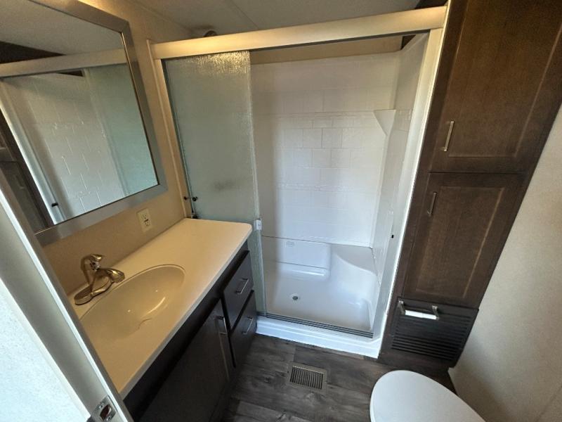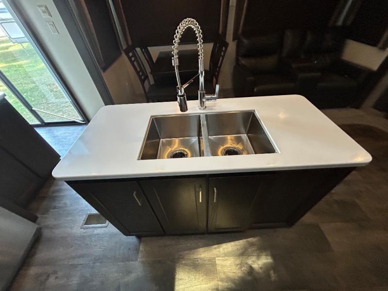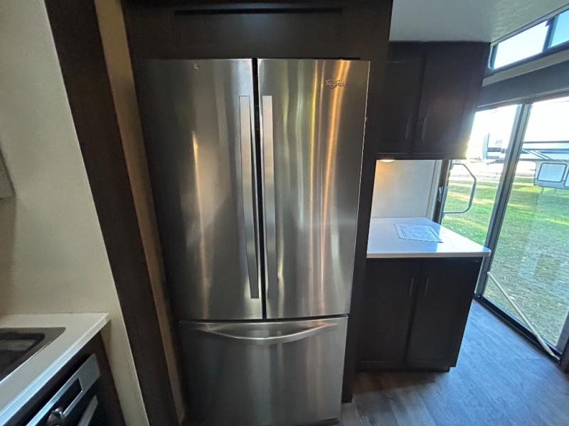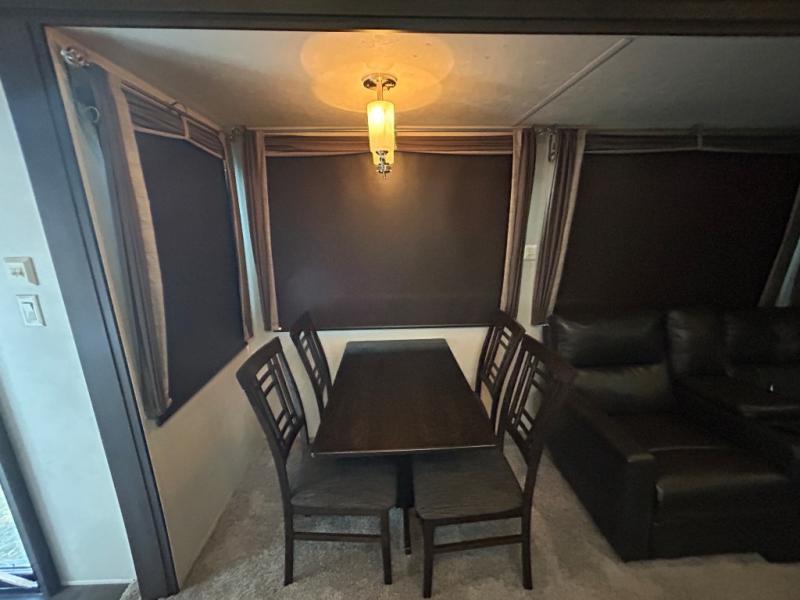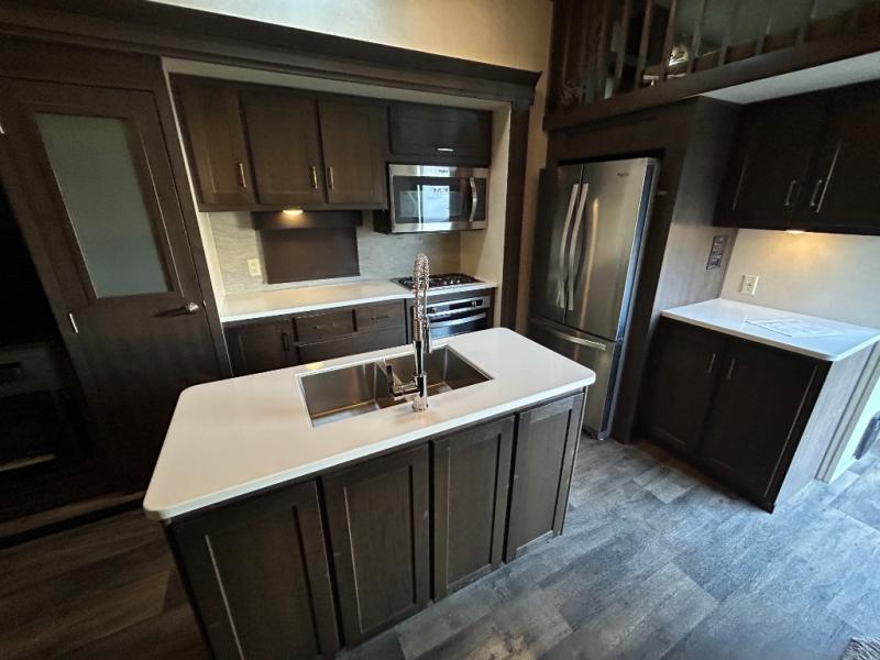 Come choose a quiet spot in the woods for your Salem Grand Villa 42DLTS destination trailer by Forest River. This model features triple slide outs, plus a loft with three bunk mats for your kids. The double entry doors makes for a smooth flow of traffic in and out. All of your tasty snacks can be kept inside the walk-in pantry. A great feature in this model is the kitchen island, it creates extra counter space to prep all your big meals and extra storage space to keep pots, pans, and serving dishes for your large group.