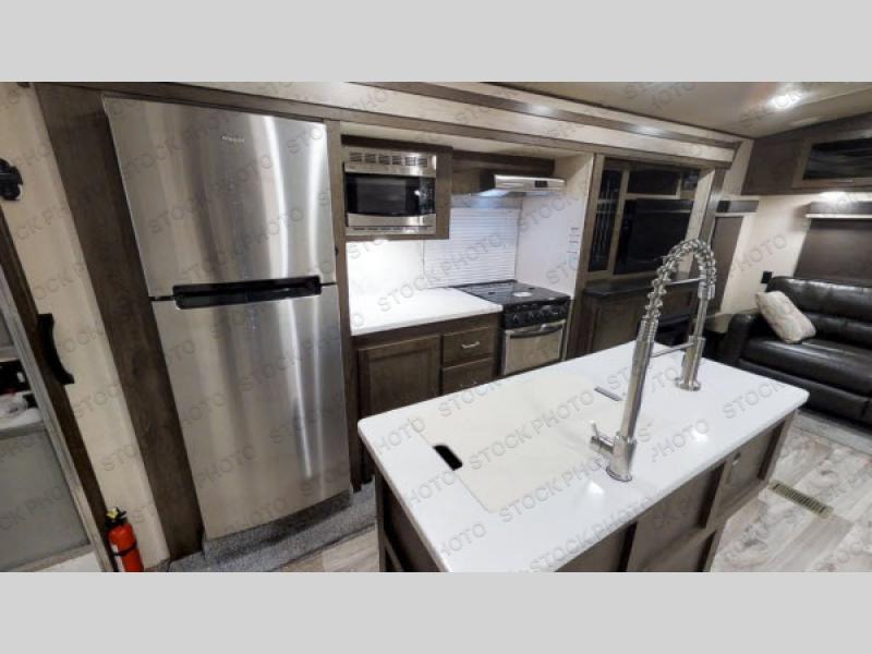 When you want time away from home, but yet want the comforts of home, then choose a Salem Hemisphere GLX travel trailer by Forest River. These models have plenty of residential features such as a stainless steel Dometic double door refrigerator, an under mount sink, stain resistant carpet in the living room and Beau plank wood linoleum in the kitchen. Along the exterior you will find an aerodynamic front cap with LED light strip, gel coated fiberglass exterior, and marine grade exterior speakers with a blue LED light. The One Touch electric awning provides plenty of shade and allows you to instantly have a nice outdoor living space and more!