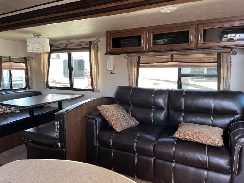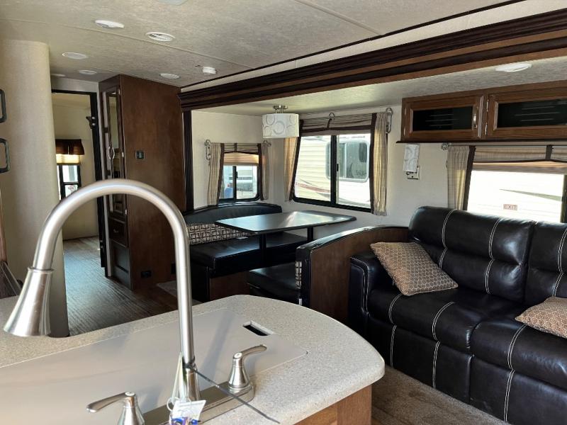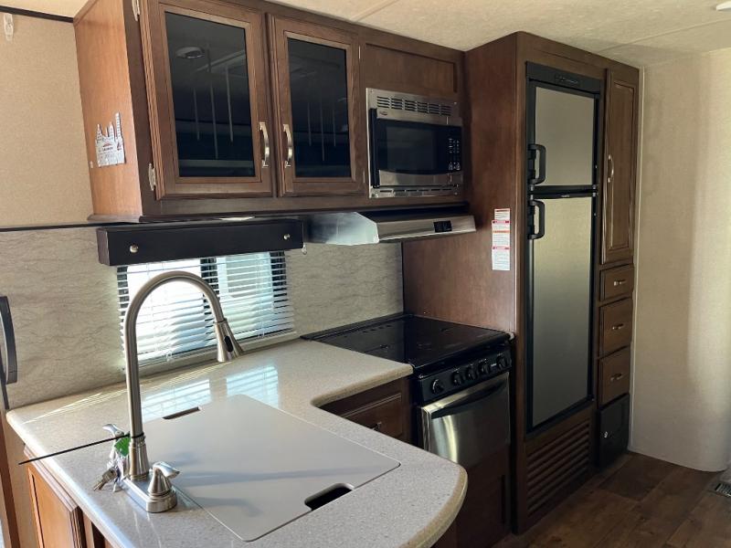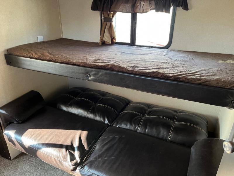 Imagine the perfect travel trailer for you and your family! Now picture yourself camping at your favorite campground with luxurious and residential features just steps away. From the queen bed and convenient walk-through bathroom, to the kids having their own room with a half bath including a tub, and a set of bunks, plus a trundle bed. There is even floor space to play games in the bunkhouse thanks to the slide out. You can make warm meals in the L-shaped kitchen and relax on the sofa or dinette when you aren't outside enjoying the shade from the 20' awning. Start living your imaginations!