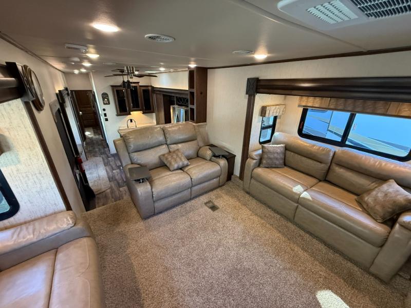 This fifth wheel offers a luxurious camping experience with plenty of space, top-notch amenities, and thoughtful design.