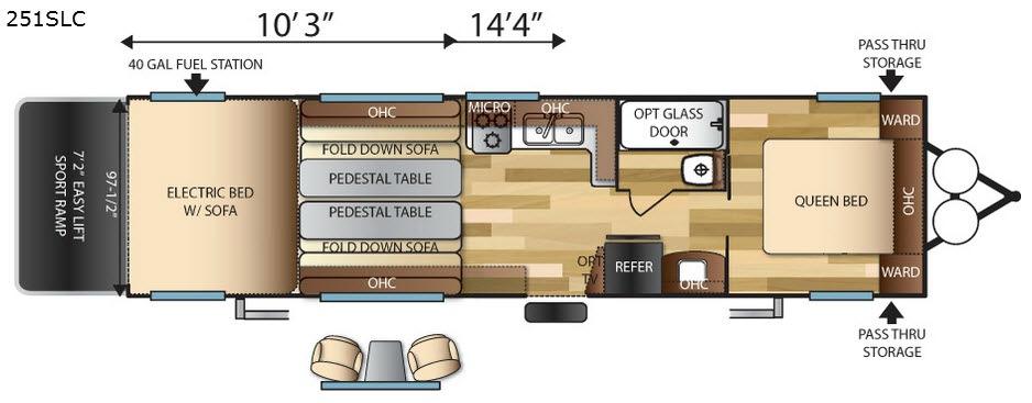 Storage is not a problem with all of the overhead cabinets and the front pass through storage, plus much much more inside and out!