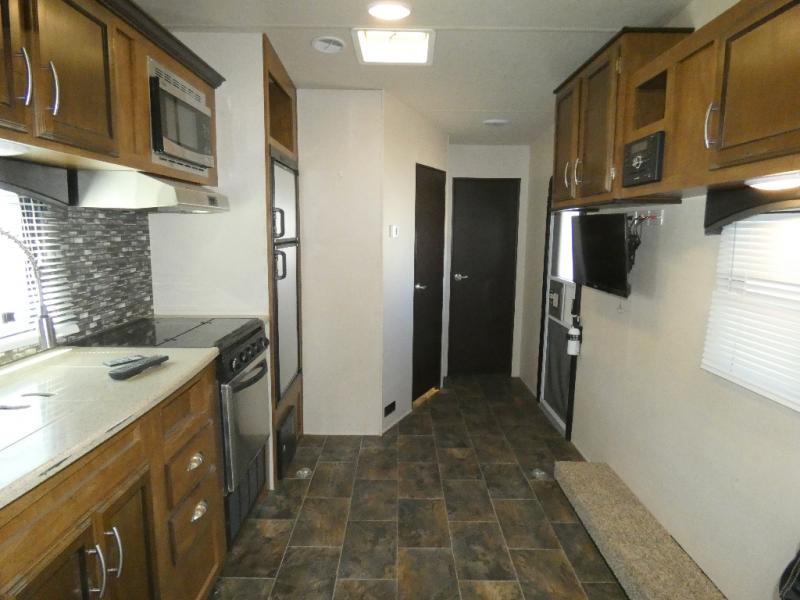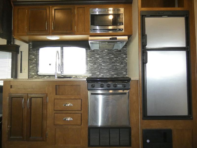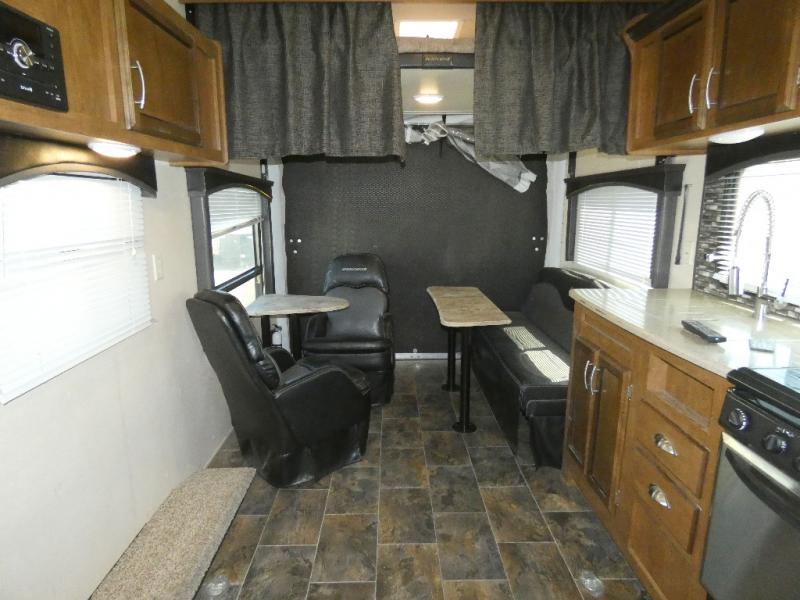 When you are ready for a weekend trip away from home, then come load up your off-road toys in this toy hauler travel trailer!