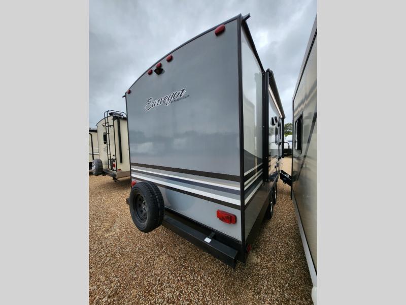 For any camping trip you will want a Forest River Surveyor travel trailer. These models are lightweight and easy to tow, plus you will find that inside there is superior craftsmanship throughout. Along the interior there is a barreled ceiling which adds more headroom in each model. Once you reach your destination then you can enjoy the view from the large panoramic windows. The designer Carefree flooring is stylish and easy to clean, and the entertainment center features a USB charging port for your electronic devices. There are several packages available such as the LE Value Package, the Surveyor Value Package, and the Fall Program Package - so now you can easily choose the features that are right for you! What are you waiting for? Come select your Surveyor travel trailer today!