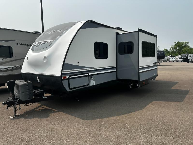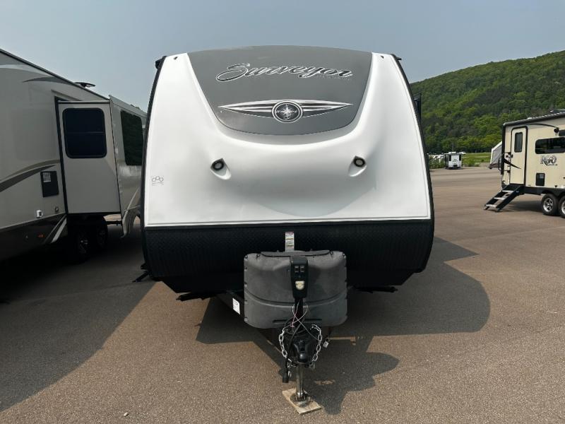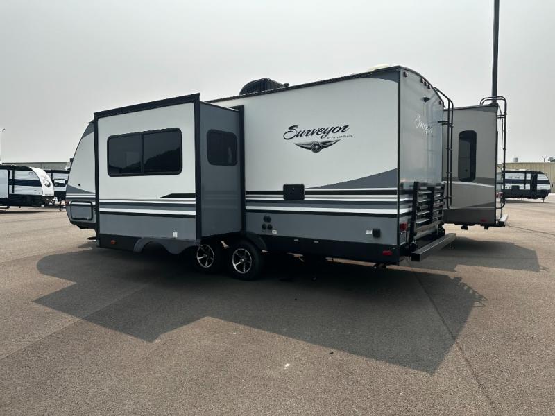 For any camping trip you will want a Forest River Surveyor travel trailer. These models are lightweight and easy to tow, plus you will find that inside there is superior craftsmanship throughout. Along the interior there is a barreled ceiling which adds more headroom in each model. Once you reach your destination then you can enjoy the view from the large panoramic windows. The designer Carefree flooring is stylish and easy to clean, and the entertainment center features a USB charging port for your electronic devices. There are several packages available such as the Surveyor Value Package and the Fall Program Package - so now you can easily choose the features that are right for you! What are you waiting for? Come select your Surveyor travel trailer today!