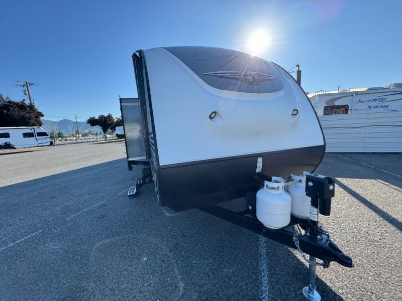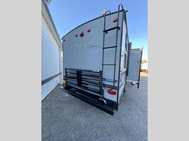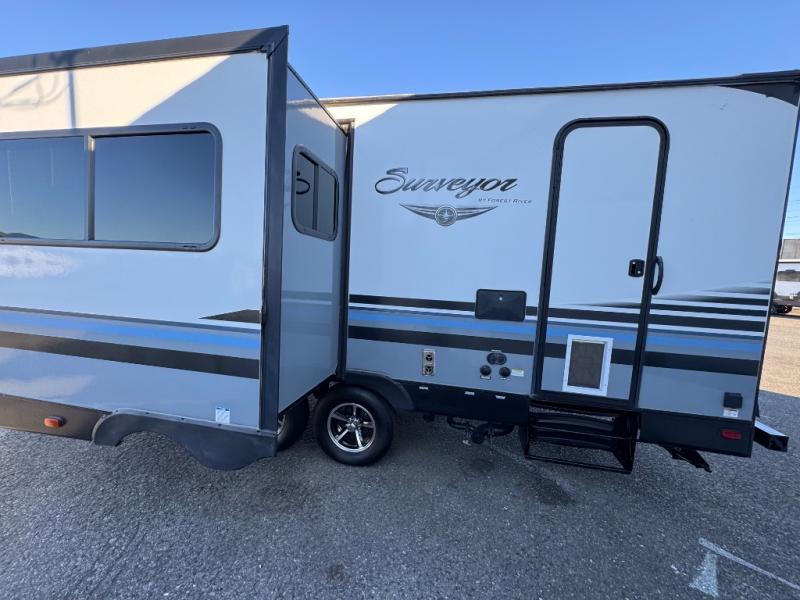 For any camping trip you will want a Forest River Surveyor travel trailer. These models are lightweight and easy to tow, plus you will find that inside there is superior craftsmanship throughout. Along the interior there is a barreled ceiling which adds more headroom in each model. Once you reach your destination then you can enjoy the view from the large panoramic windows. The designer Carefree flooring is stylish and easy to clean, and the entertainment center features a USB charging port for your electronic devices. There are several packages available such as the Surveyor Value Package and the Fall Program Package - so now you can easily choose the features that are right for you! What are you waiting for? Come select your Surveyor travel trailer today!
