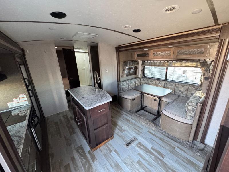Your family of eight will enjoy all of the space throughout this single slide out Surveyor 245BHDS travel trailer. Sleeping space can be found in the front private bedroom for mom and dad, the rear oversized double bunks for the kids, and if needed the u-dinette can easily convert into additional sleeping space. Throughout this model there are Shaker style cabinets plus more storage can be found under the queen bed and with the two wardrobes in the bedroom. The island features a sing with a high-rise faucet and also gives you more counter space to work. Outside there is a front pass through storage area and an outside kitchen where you can fix your evening meal. The 14' awning provides plenty of shade and gives you more outdoor living space. There are also two entry doors, plus more!