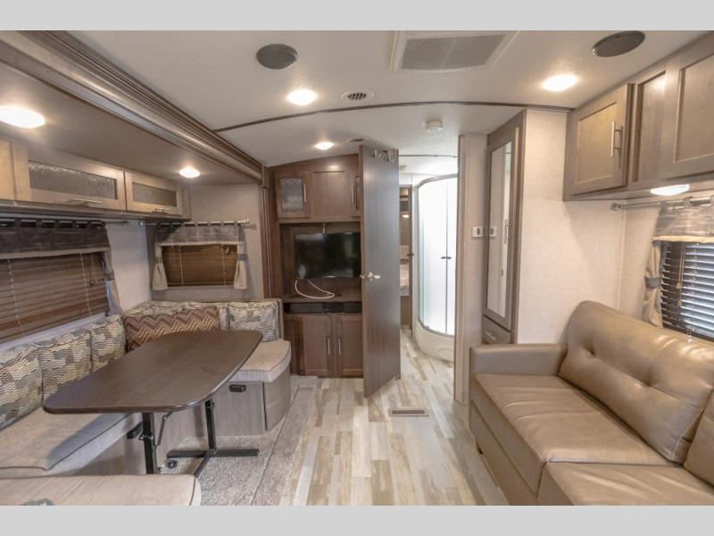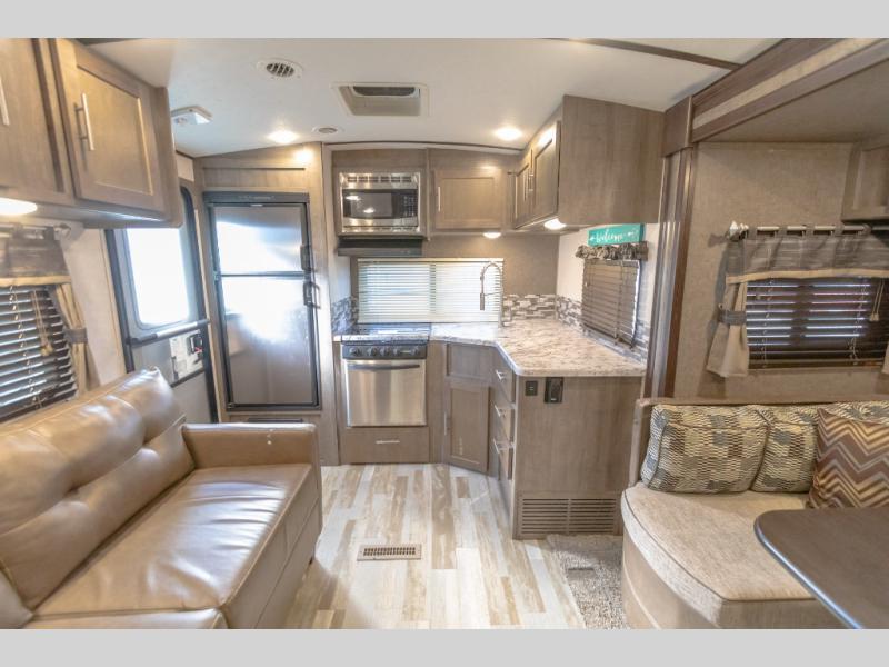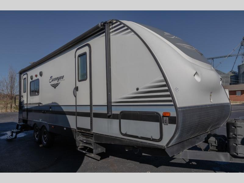 For any camping trip you will want a Forest River Surveyor travel trailer. These models are lightweight and easy to tow, plus you will find that inside there is superior craftsmanship throughout. Along the interior there is a barreled ceiling which adds more headroom in each model. Once you reach your destination then you can enjoy the view from the large panoramic windows. The designer Carefree flooring is stylish and easy to clean, and the entertainment center features a USB charging port for your electronic devices. There are several packages available such as the Surveyor Value Package and the Fall Program Package - so now you can easily choose the features that are right for you! What are you waiting for? Come select your Surveyor travel trailer today!