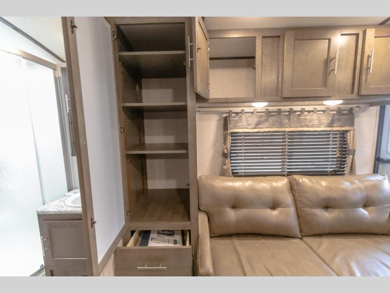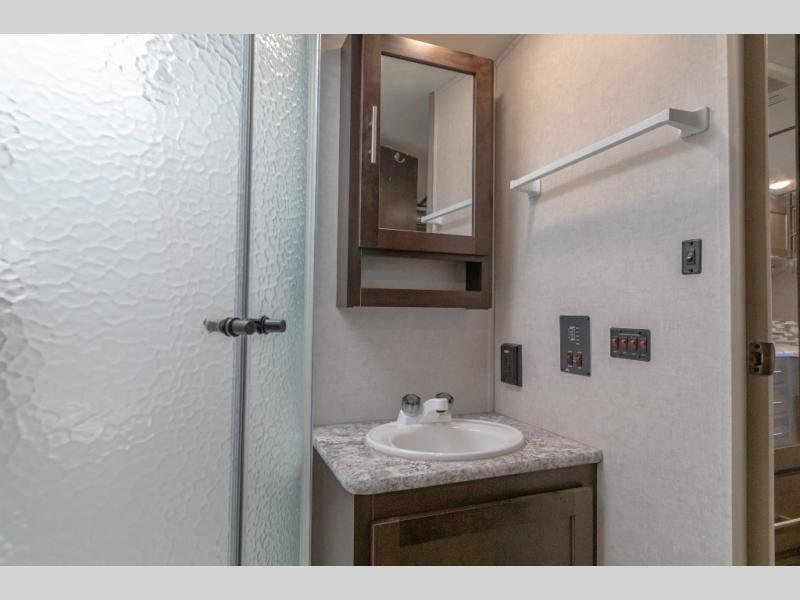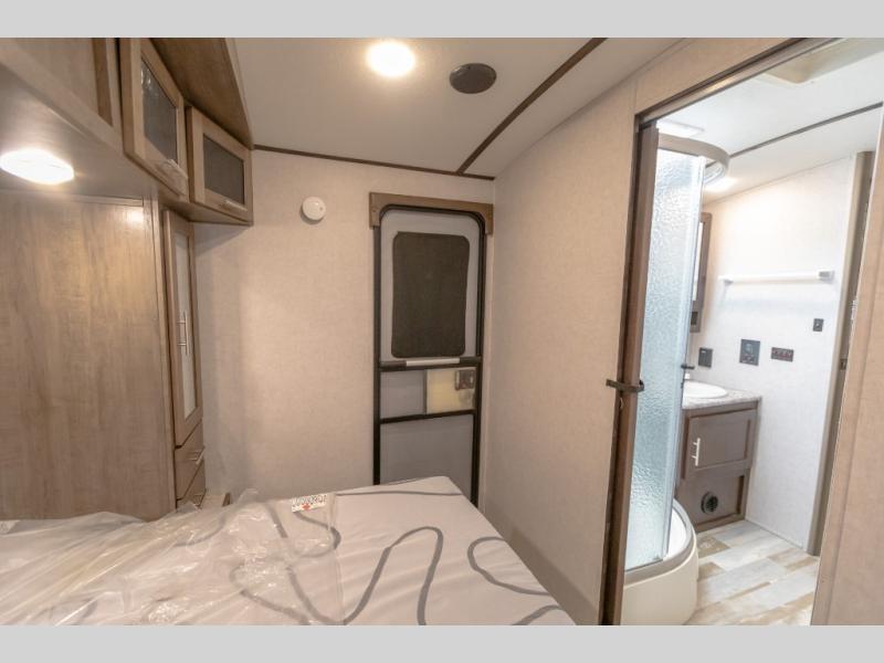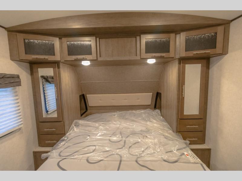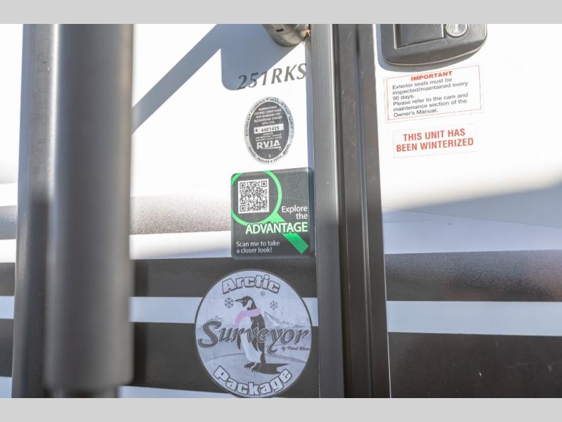 You can either enter this Surveyor 251RKS from the front or rear entry door. Along the rear wall of this model is the kitchen area with all of the amenities needed to fix your favorite meals while you are camping. The slide out along the roadside helps to open up the floor space in this unit. The bathroom is a walk-through with a sliding door along one side which closes off the private front bedroom. Below the bed there is a super storage center and along either side of the bed there are wardrobes with storage. In the evening grab your camp chair, a snack, and enjoy visiting with friends under the 20' awning and more!