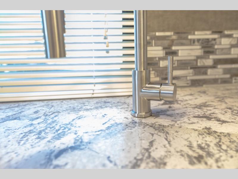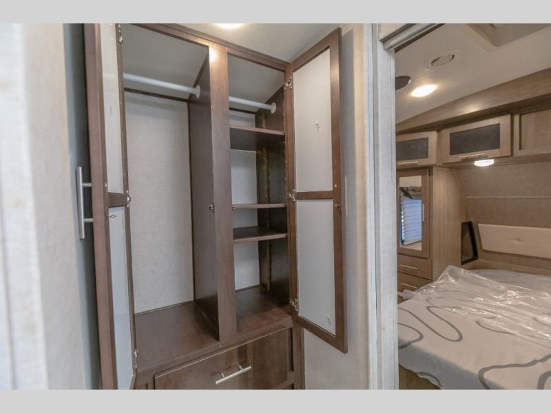 What I liked most: Master bedroom and bathroom have plenty of storage. Two reading lights in master bedroom. Corner glass shower and bathroom. Storage and living dining area have mirrored front which is nice touch.