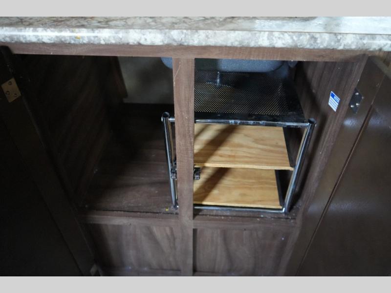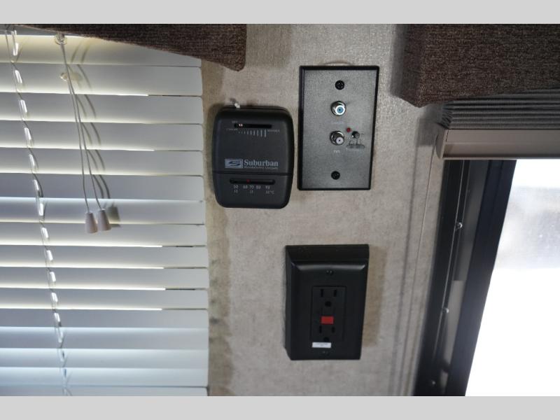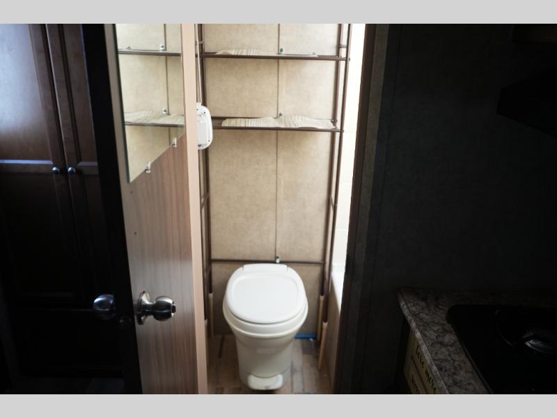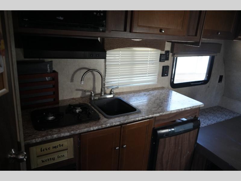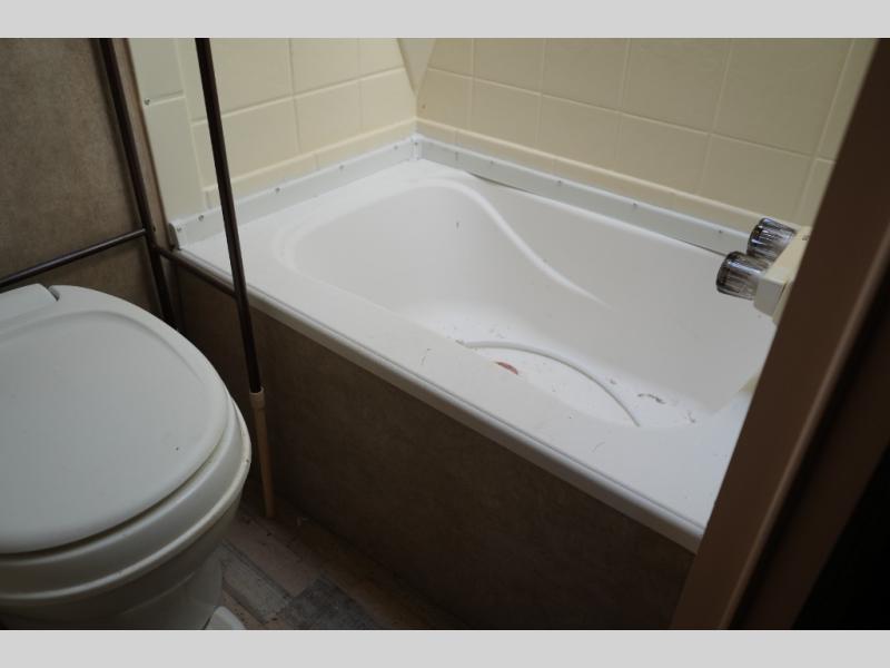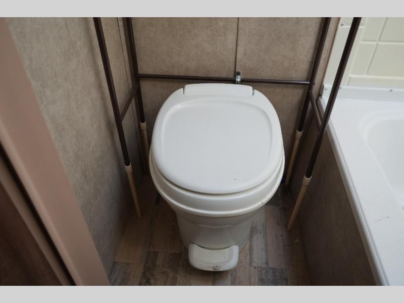 Inside, the Viking 14R maximizes every inch of space. The booth dinette and sofa easily convert into sleeping areas, comfortably accommodating two. A compact kitchen provides everything you need to prepare meals on the road, while the private tub and toilet offer the convenience and privacy tent camping can’t provide.