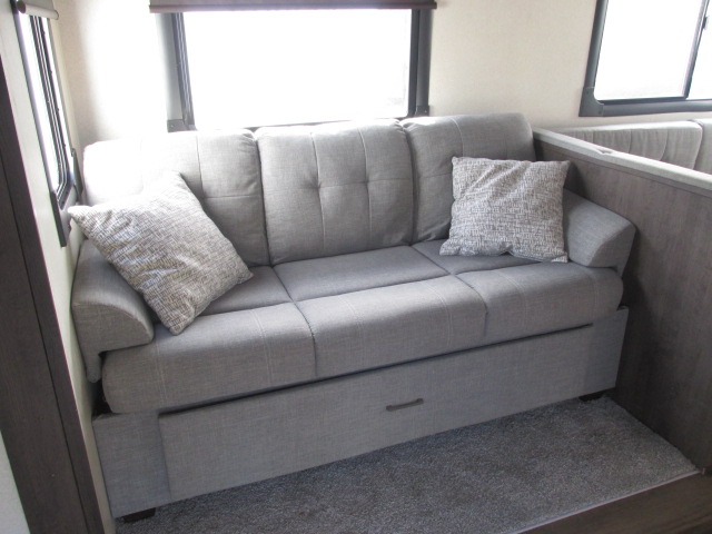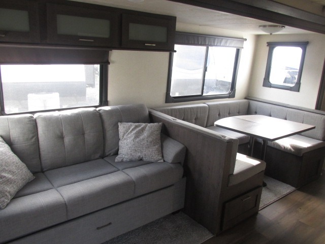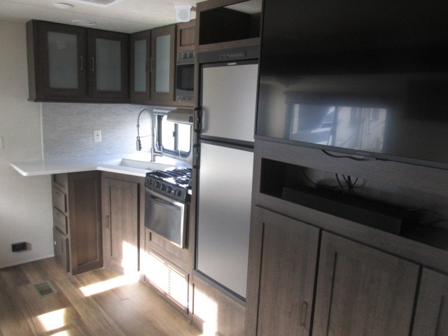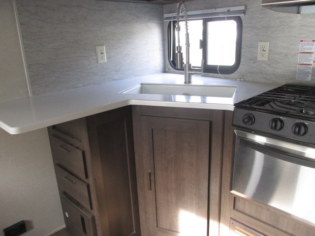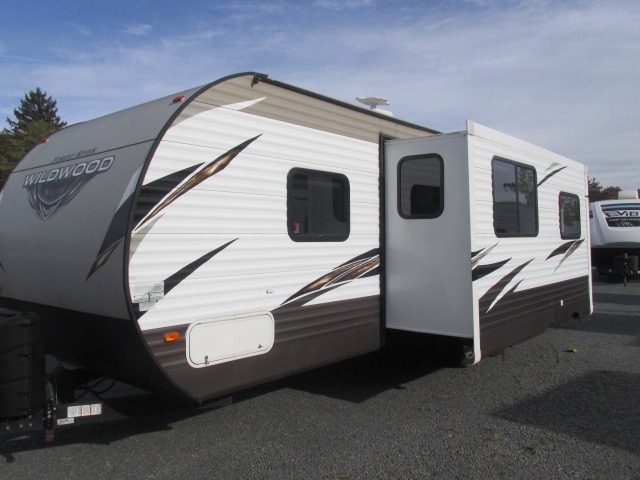 These Wildwood travel trailers are something to take a look at! Inside you have 27" overhead cabinets giving you plenty of space for storing the items you take with you. There is even a large pots and pans drawer under the dinette. Storage under the bed is an added perk, so there is no need to worry about how much you bring with you. The triple seal slide out system keeps all the rain and excess water out, and all of the heat or cool air in. The safety glass windows are there to look nice and also if they were to break you won't have to worry about anyone getting cut. Outside these travel trailers, the tires are filled with nitrogen, and the frames are built with a powder coated I-beam frame.