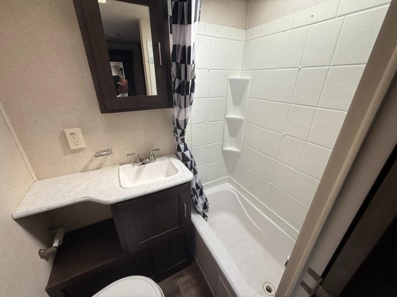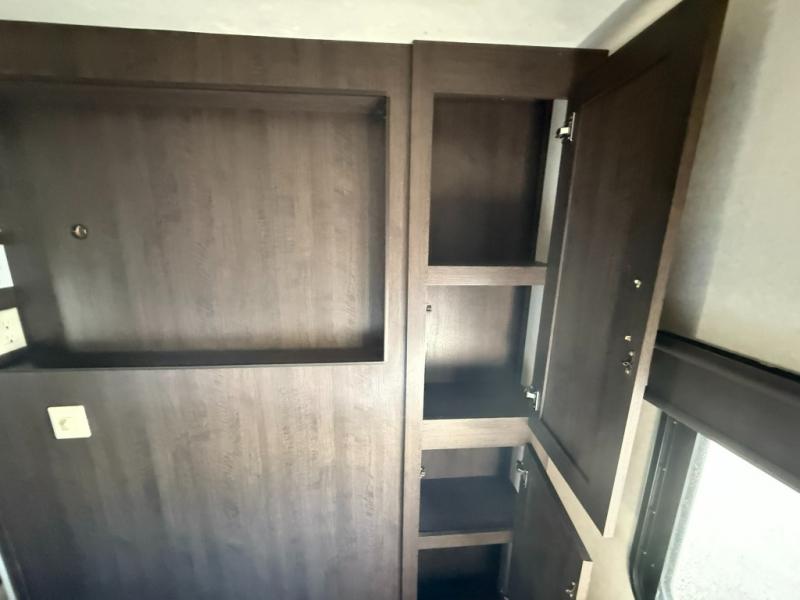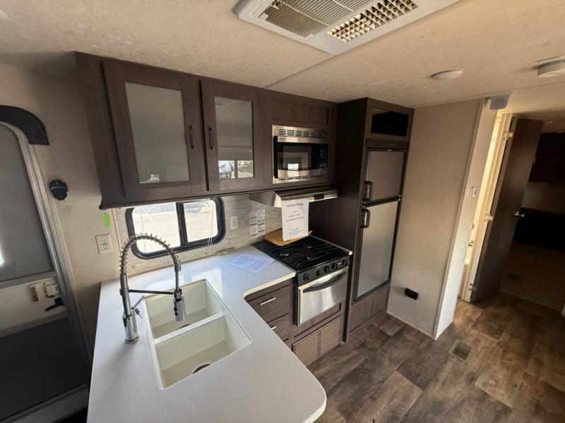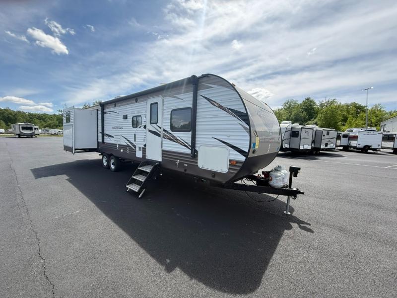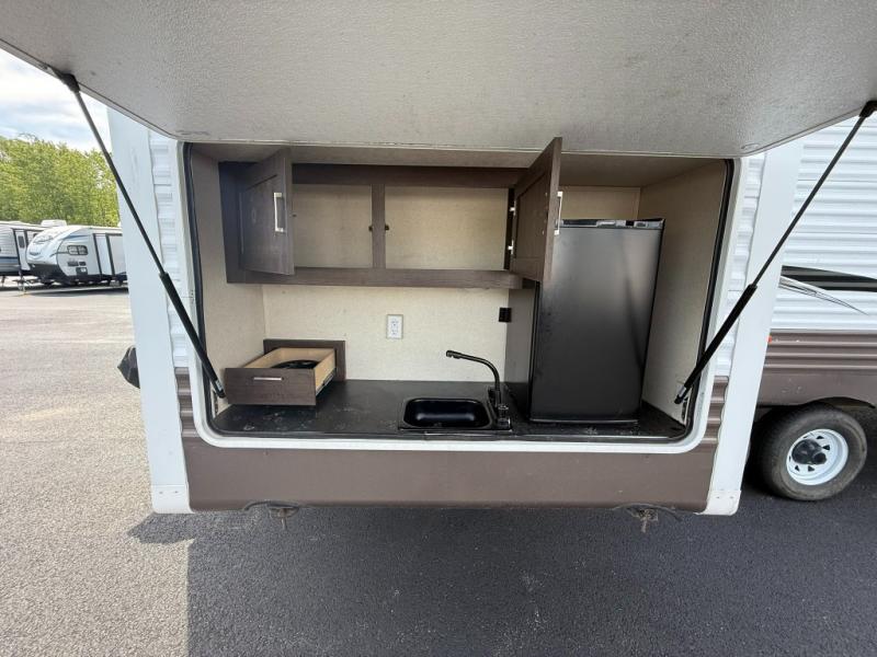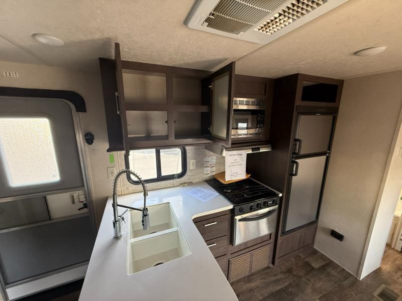 These Wildwood travel trailers are something to take a look at! Inside you have 27" overhead cabinets giving you plenty of space for storing the items you take with you. There is even a large pots and pans drawer under the dinette. Storage under the bed is an added perk, so there is no need to worry about how much you bring with you. The triple seal slide out system keeps all the rain and excess water out, and all of the heat or cool air in. The safety glass windows are there to look nice and also if they were to break you won't have to worry about anyone getting cut. Outside these travel trailers, the tires are filled with nitrogen, and the frames are built with a powder coated I-beam frame.