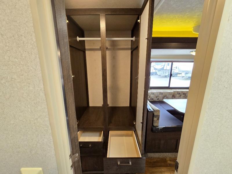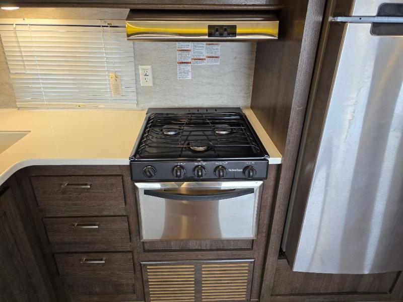 These Wildwood travel trailers are something to take a look at! Inside you have large overhead cabinets giving you plenty of space for storing the items you take with you. There is even a large pots and pans drawer under the dinette. Storage under the bed is an added perk, so there is no need to worry about how much you bring with you. The triple seal slide out system keeps all the rain and excess water out, and all of the heat or cool air in. The safety glass windows are there to look nice and also if they were to break you won't have to worry about anyone getting cut. The exterior frames are built with a powder coated I-beam frame.