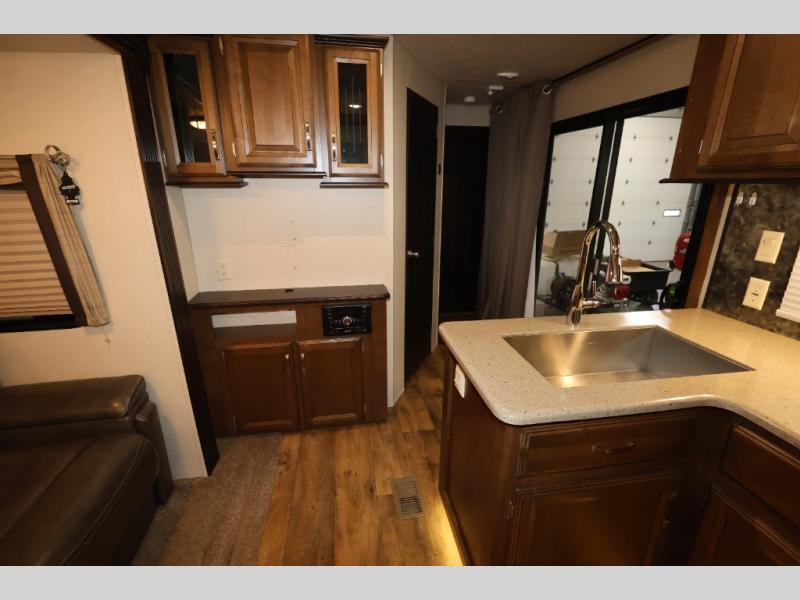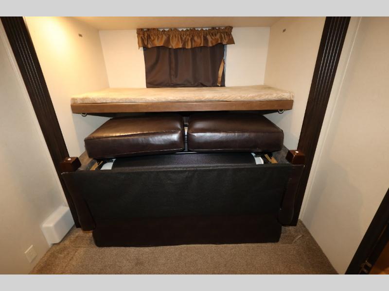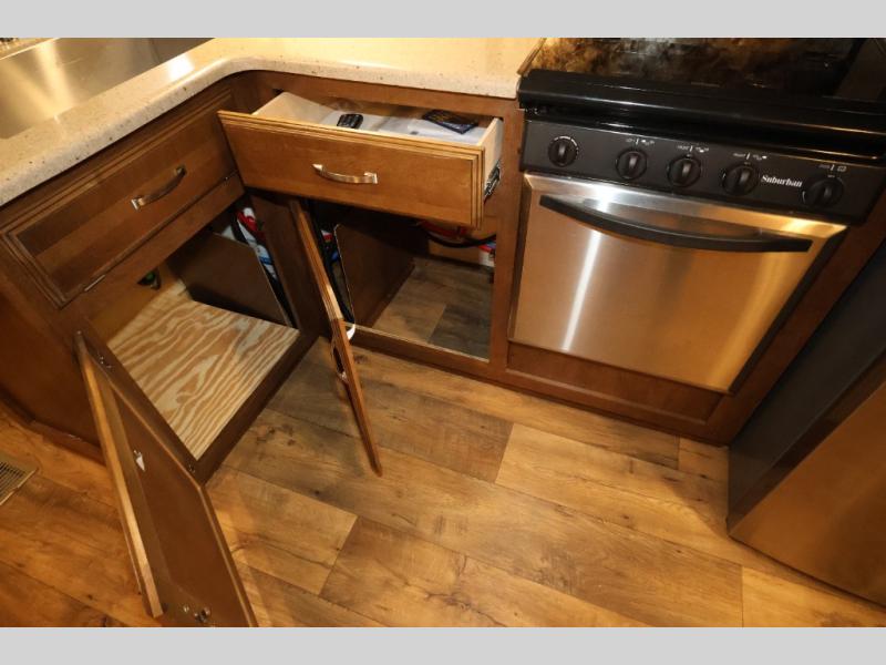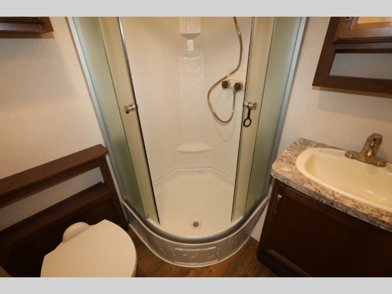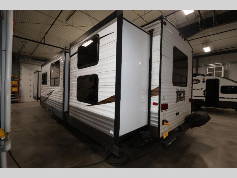 With a Wildwood DLX destination trailer you can choose to park your unit at a campground longer than your typical camping trip. These models have so much to offer from the Bluetooth sound bar with TV hook-up to the Beauflor vinyl slip resistant linoleum, plus in the kitchen there is a new Whirlpool 1.7 cu. ft. oversized microwave and a one piece, water resistant, designer backsplash! At night come rest on the Denver 9" pillowtop mattress, plus there is extra storage space with the dresser drawers. If the features are not enough for you then you many want to add the Limited Time Program Options which include an exterior white LED light strip, central vacuum system, LG solid surface kitchen and bath counter tops, plus more!