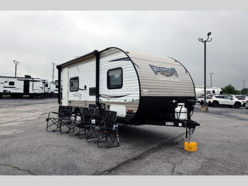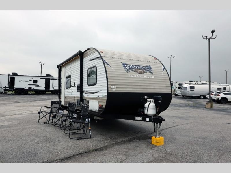 In any Wildwood FSX travel trailer by Forest River you can count on having fun while you enjoy any outdoor adventure away from home. These full-featured lightweight units are easy to tow, and offer a modern residential living space including a queen sized bed in each unit, bunks in select models, and there is also one toy hauler unit for those who can't leave home without a few big toys tagging along! These trailers are all a full 7' 6" wide with full interior stand up height. You will also find a roof mount AC for added comfort in warmer climate as well. So, for a value packed unit that is lightweight and feature rich for its size, choose any Wildwood FSX travel trailer and head out for a weekend of outdoor fun!
