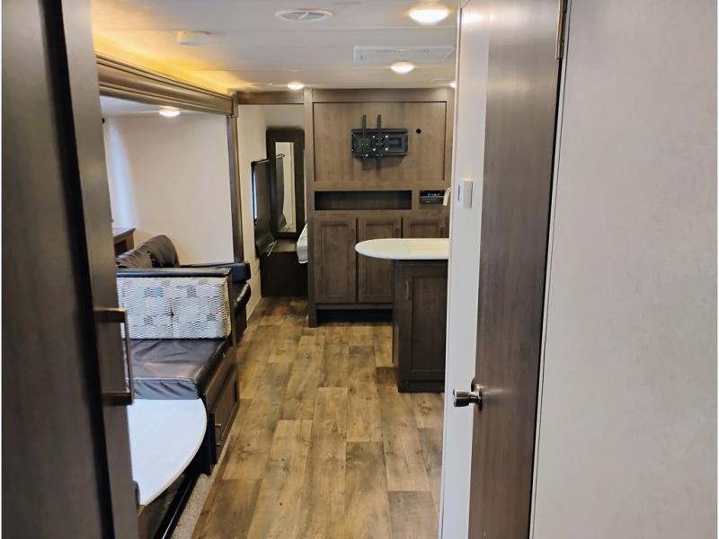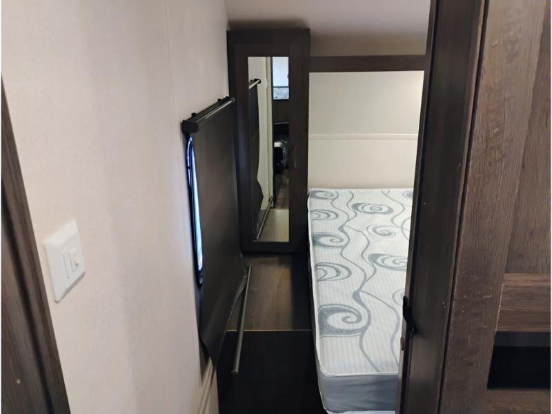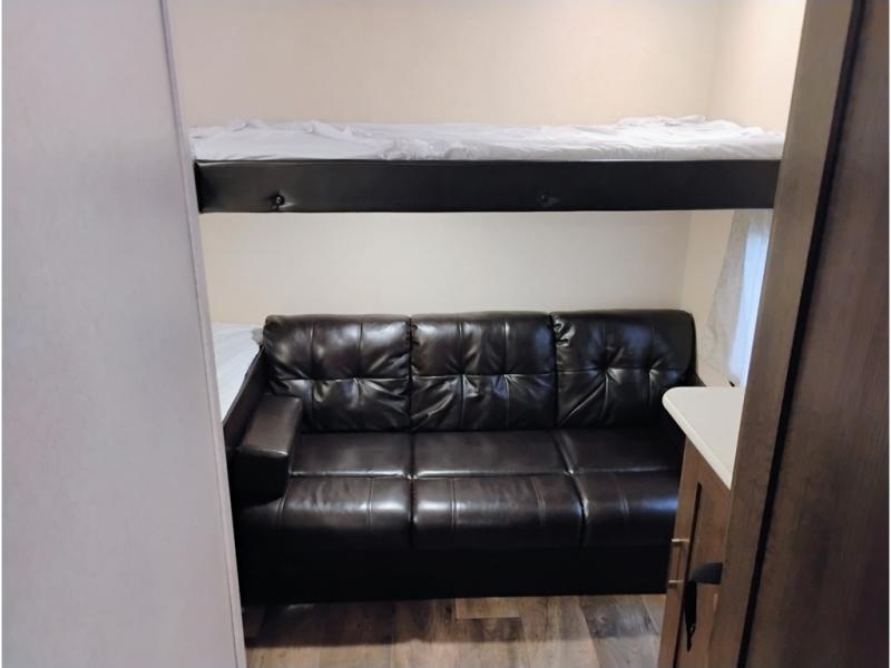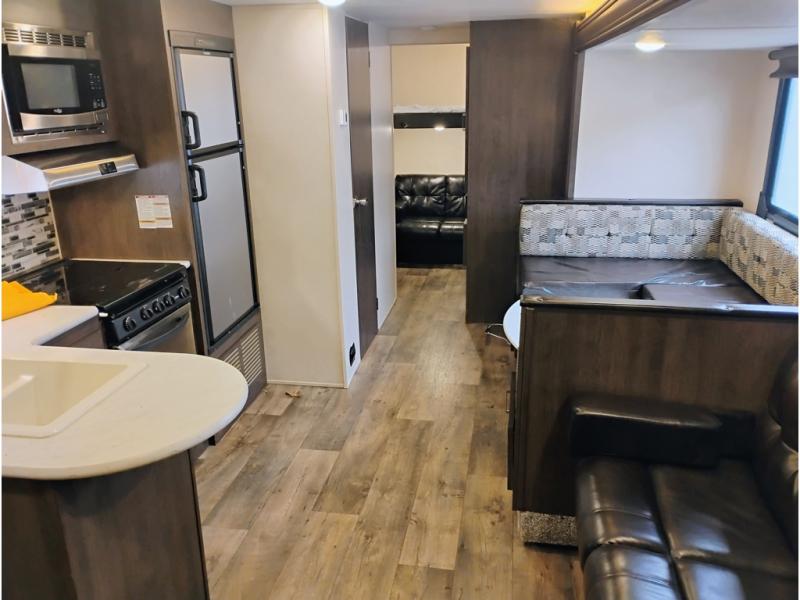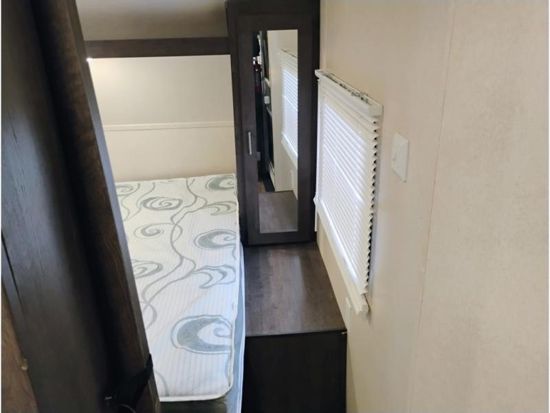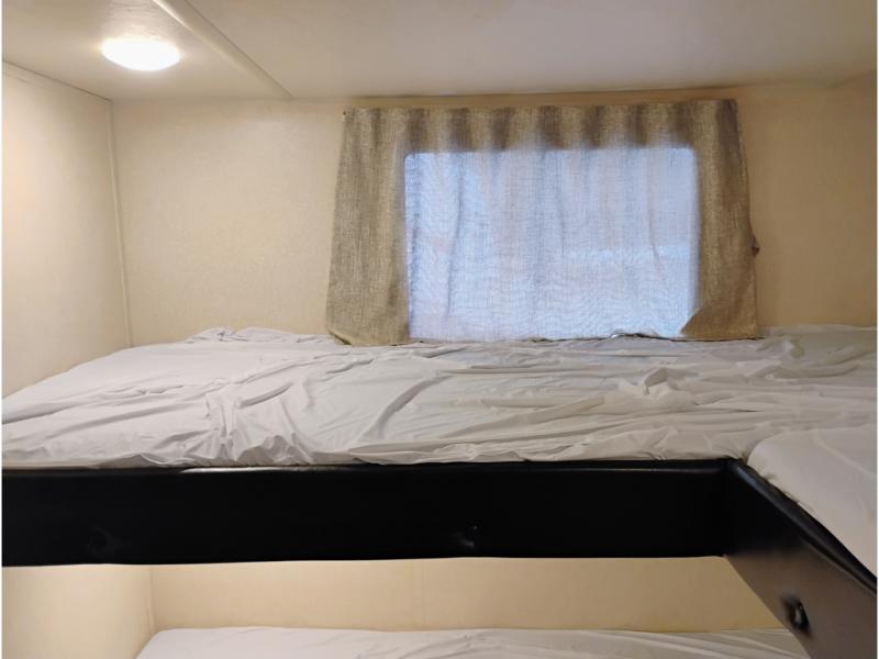 You will want each camping trip to extend just a little bit longer when you choose to camp with this Wildwood X-Lite 273QBXL. Your kids will enjoy the rear bunkhouse which has three bunk beds plus a jiffy sofa below one bunk. While the chef in the family is fixing the meals you can easily visit with your family since the kitchen and living area are open and spacious with the single slide out. You can enjoy your meals at the u-dinette and at night this converts into additional sleeping space. The front bedroom is ideal for mom and dad. Here they can get a good night's rest on the queen bed plus there is storage with the wardrobes and overhead shelf. Maybe you prefer more time outdoors then you will want to add the optional camp kitchen!