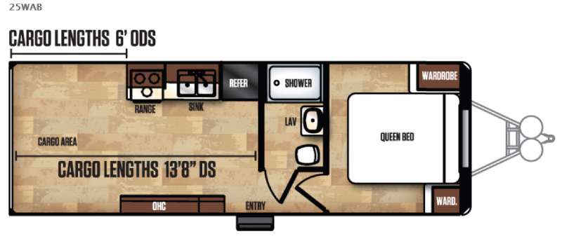Start your next outdoor adventure with this Work and Play FRP Series toy hauler travel trailer 25WAB hitched up and ready to go! This unit features 6' of cargo space along the road side, and 13' 8" of cargo space along the door side. You will find plenty of room for your off-road toys, as well as comfortable accommodations when you head inside for a bit of down time between enjoying the great outdoors.