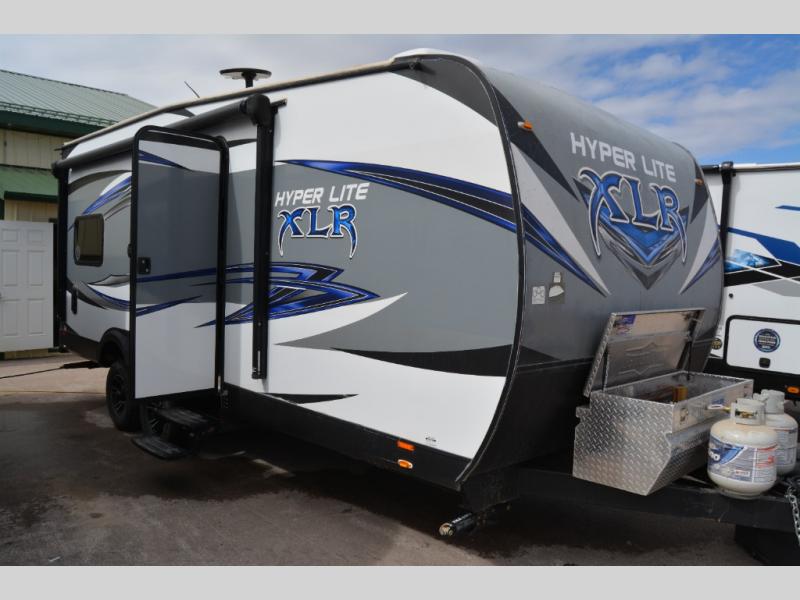 Take this XLR Hyper Lite travel trailer out on your next toy hauling adventure! If you want something that is on the smaller side, lightweight, and easy to unload and load one or two of your toys, then model 19HFS is for you and your family. If you would like to take a couple more guests along you can add the optional power bed above the dual opposing sofas and fold-up dinette.