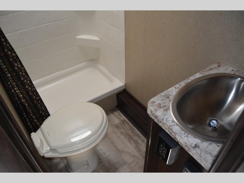 Forest River XLR Hyper Lite has an enclosed underbelly that is fully insulated with woven aluminum foil and is heated so you can take your toys out even in the cooler months. You will not have to worry about anything getting damaged while you are on the road because you will have 5,000lb steel reinforced tie downs not only in the rear to keep your toys safe, but also in the pass through storage to keep things from moving around. The interior has brushed nickel hardware, stainless steel appliances, and Beauflor® tile pattern flooring throughout these models giving a little more of an at home feel.