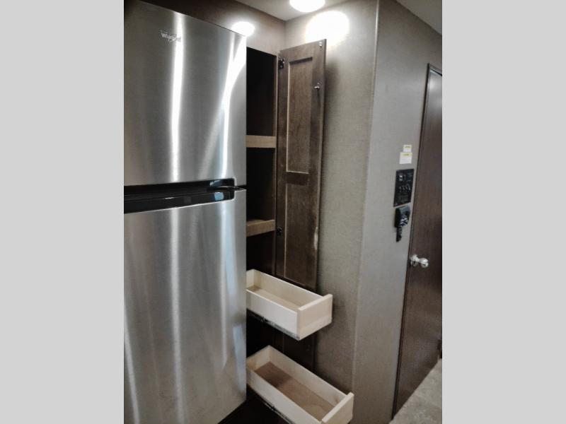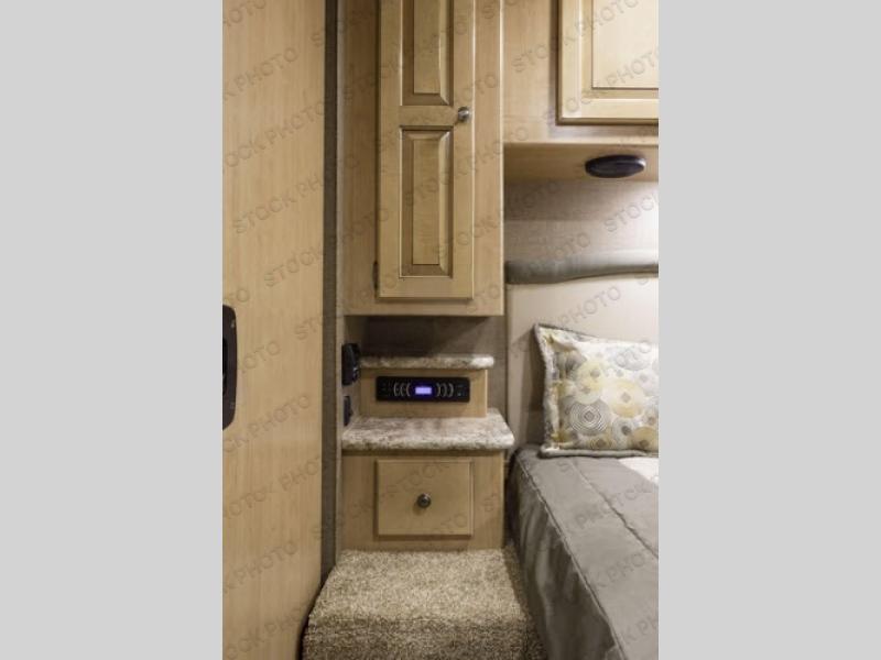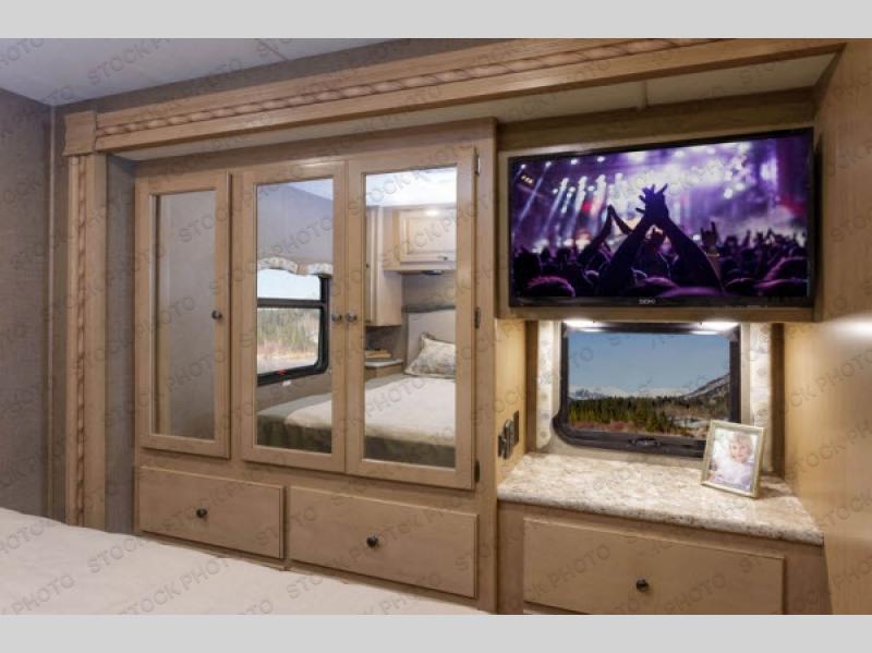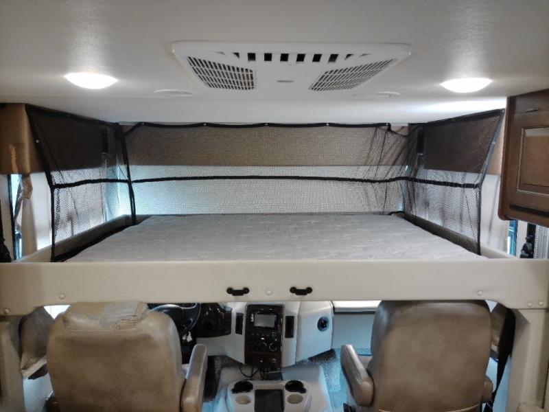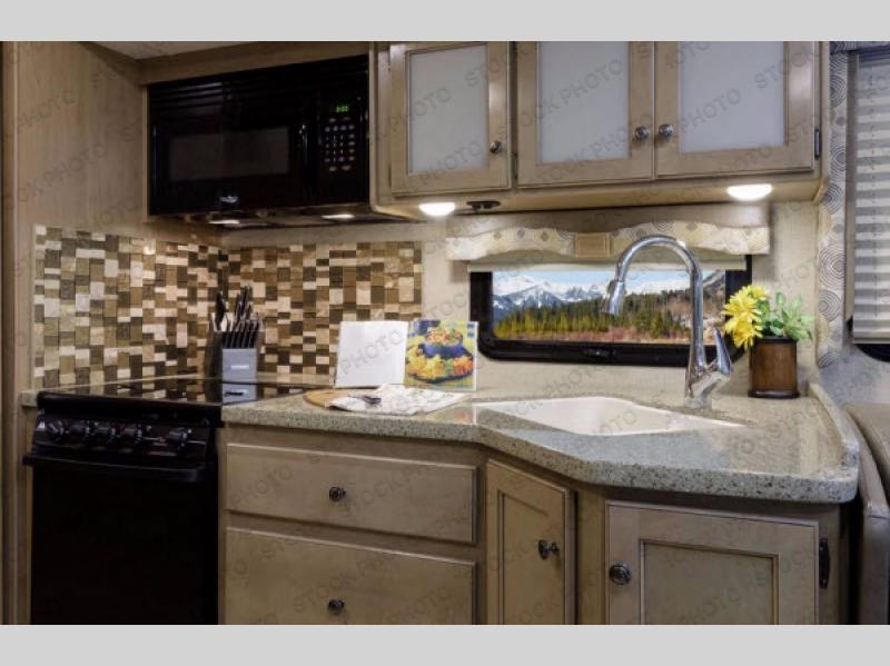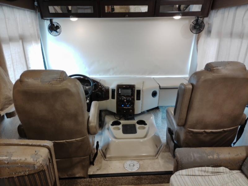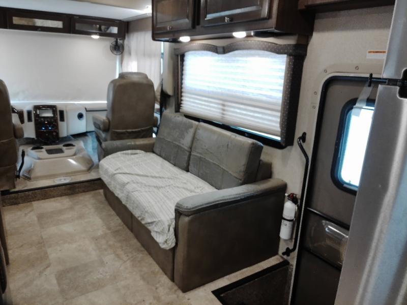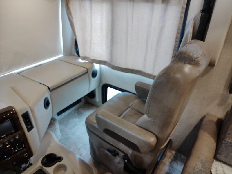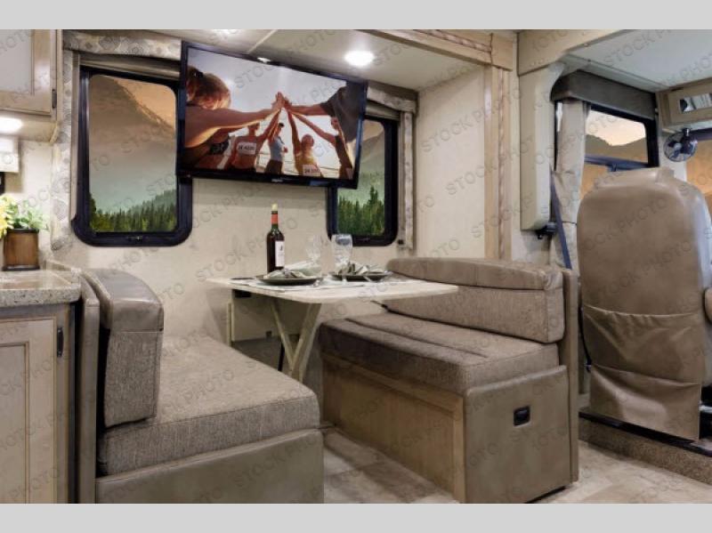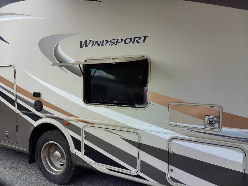 You will find much to love about all Windsport models whether you are out for a long road trip across the country, or a weekend tailgating party close to home. All Windsport models feature Leatherette furniture, solid surface countertops, and raised panel upper cabinet doors with nickel finish hardware and glass inserts on select doors. You will also find added sleeping space in the drop-down cabover bunk that the kids are sure to love. With the swivel and reclining captain's chairs you can easily bring them into a conversation area in the living space once parked, and there is a dash workstation with 110-volt and 12-volt outlets at the passenger side for those who need to do a bit of work while traveling, or for those who just enjoy surfing the internet. On the outside, enjoy Robocast storage compartments, an outdoor shower, plus a 32" LED TV on a manual swivel, and a legless lateral power awning with integrated LED lighting. Make any Windsport class A gas motor home by Thor Motor Coach your new home-away-from-home today!