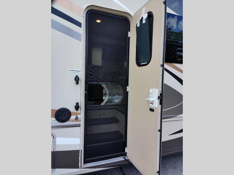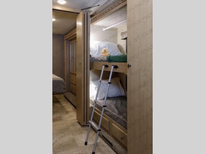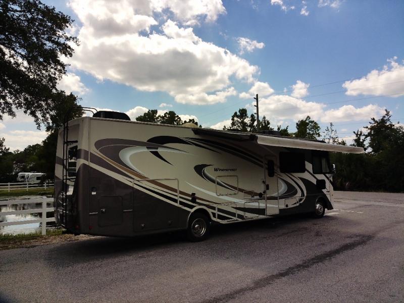 Traveling just got a lot more comfortable when you stepped inside this Windsport class A gasoline coach. Model 34J features a spacious interior thanks to a full wall slide, and the kids are much happier knowing they have their own space. Starting with the swivel captain's chairs for mom and dad, a sofa bed and Dream dinette for the kids, and a total of six seat belts, everyone can ride in safety and comfort. The full kitchen and complete bath makes your journey that much more enjoyable allowing you to stop where ever you like. The bunk beds with two TVs give the kids some privacy, and there are two more TVs for family movie night. The exterior 32" LED TV and 18' awning with LED lighting provide an entertaining space outdoors. Choose this model today, you will not regret it!