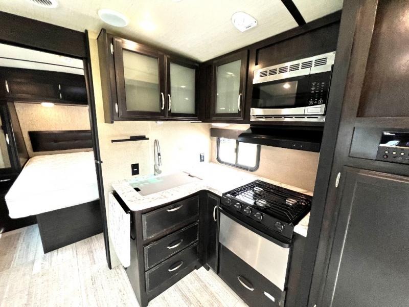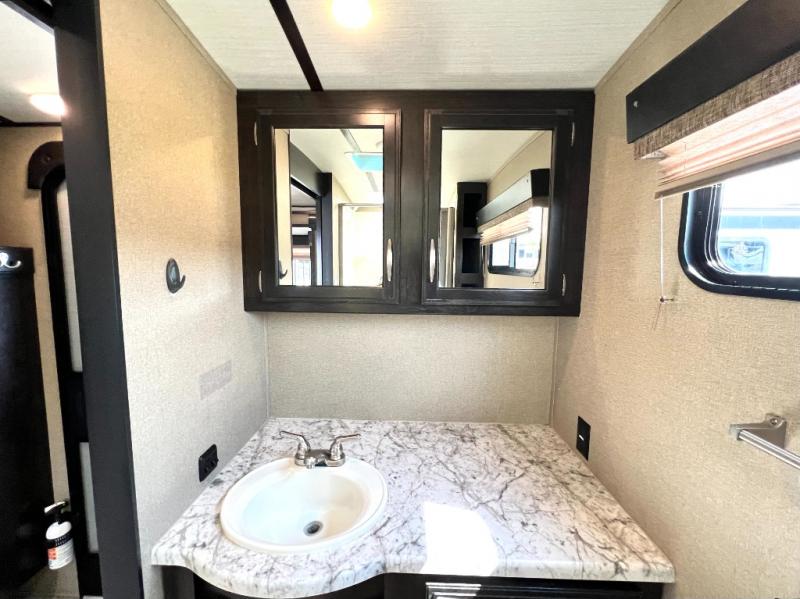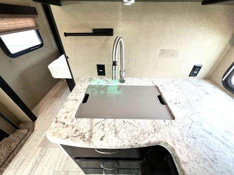 The perfect travel trailer for a smaller family, or a couple. This Imagine travel trailer 2150RB by Grand Design provides an escape from it all when you head out for a weekend at the RV park or family farm. You will find sleeping for 4, and full kitchen and bath amenities. You can even bring your pets along to enjoy the pet dish drawer. Be sure to place your flip flops in the shoe storage before relaxing in front of the 32" LED TV with swing arm. It's time to find out why everyone wants this trailer.