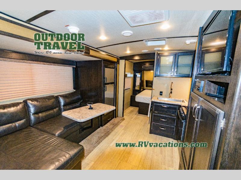 The perfect travel trailer for a smaller family, or a couple. This Imagine provides an escape from it all when you head out for a weekend at the RV park or family farm. You will find sleeping for four, and full kitchen and bath amenities. You can even bring your pets along to enjoy the pet dish drawer. Be sure to place your flip flops in the shoe storage before relaxing in front of the 32" LED TV with a swing arm for convenience. It's time to find out why everyone wants this trailer.